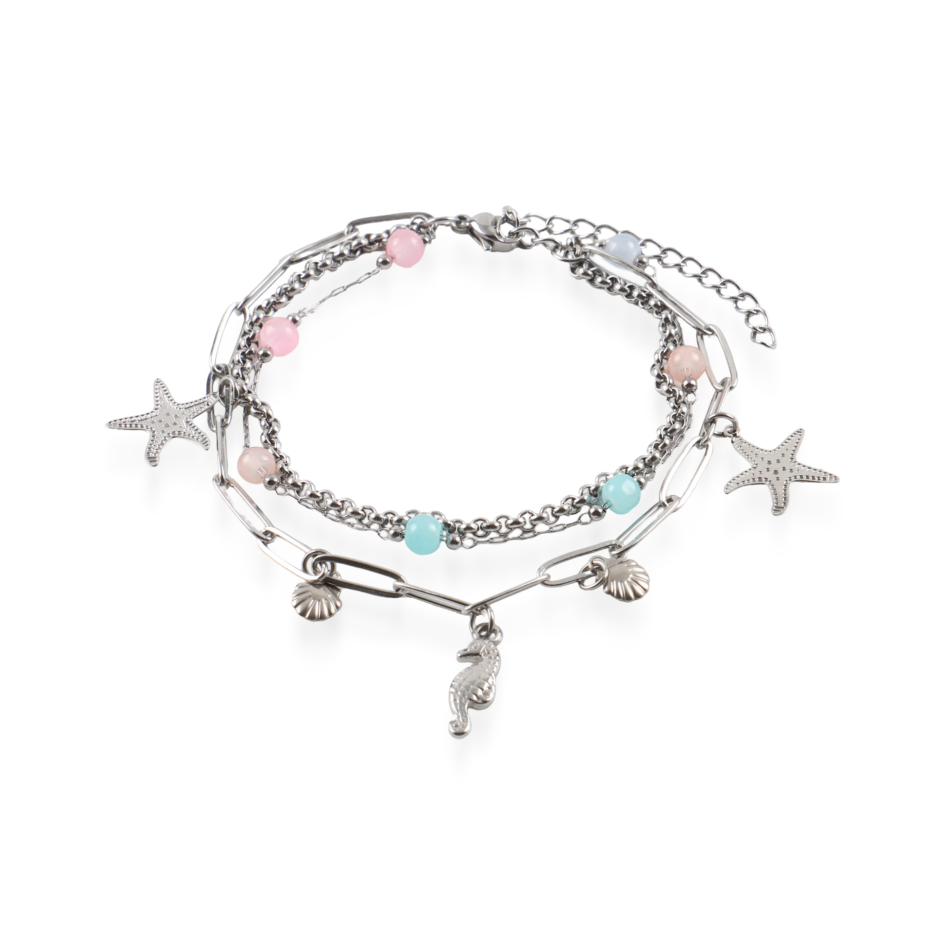 Χειροποίητο Τριπλό Βραχιόλι με Χάντρες Mar and Mar Adily Silver (Mix) από Ανοξείδωτο Ατσάλι