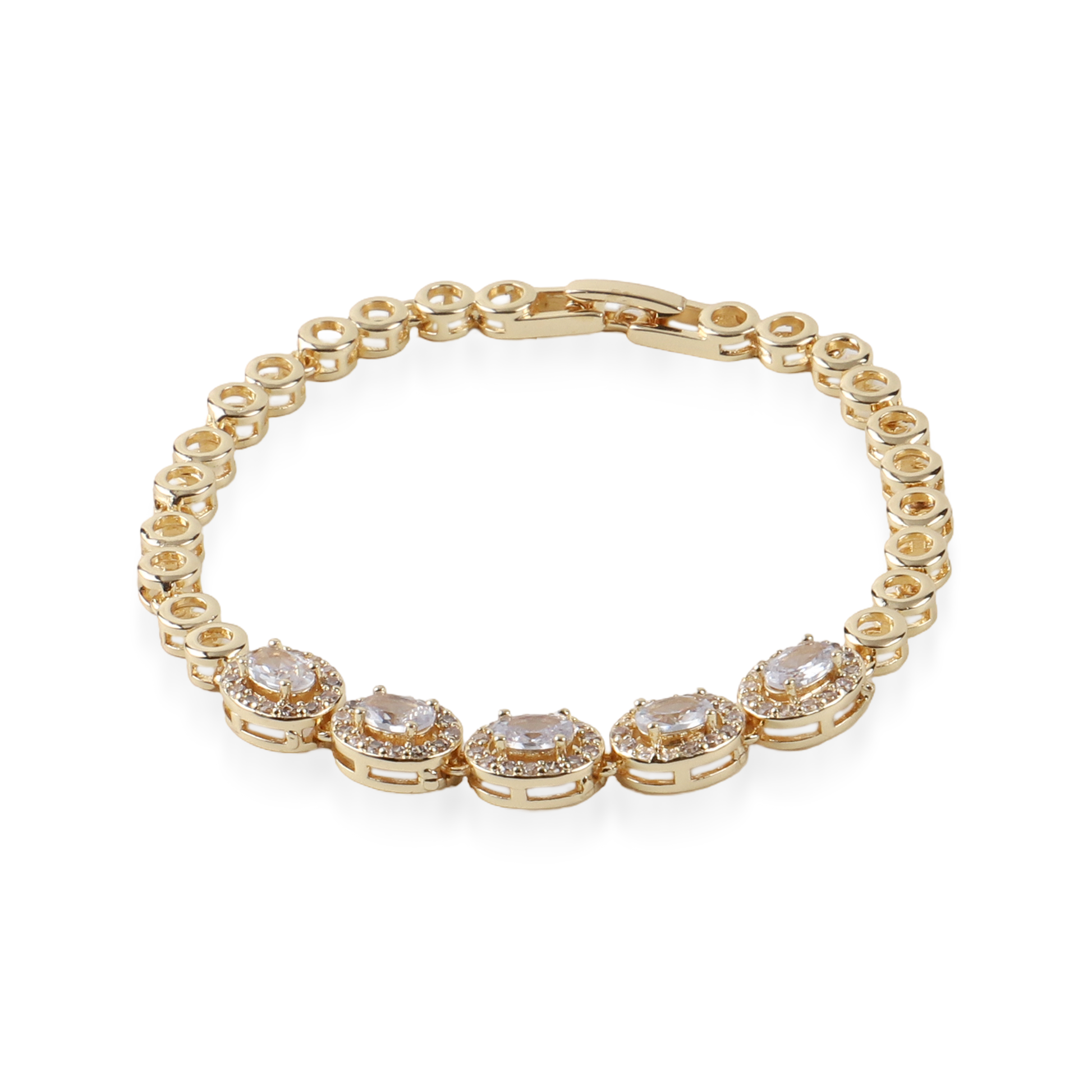 Αναβαθμίστε το στυλ σας με αυτήν την εκλεπτυσμένη αλυσίδα χεριού σε διπλά επιχρυσωμένο 18Κ και χρώμα. Η λάμψη των λευκών πετρών Zircon περιμετρικά προσθέτει λάμψη και φινέτσα, ενώ το Zircon στο κέντρο δίνει ένα μοναδικό στοιχείο. Αυτή η αλυσίδα χεριού είναι ιδανική για εκείνες τις ιδιαίτερες περιστάσεις όπου θέλετε να ξεχωρίσετε. Φορέστε την μόνη της για μια εντυπωσιακή εμφάνιση ή συνδυάστε την με άλλα κοσμήματα για έναν εκλεπτυσμένο συνδυασμό λάμψης και στυλ.