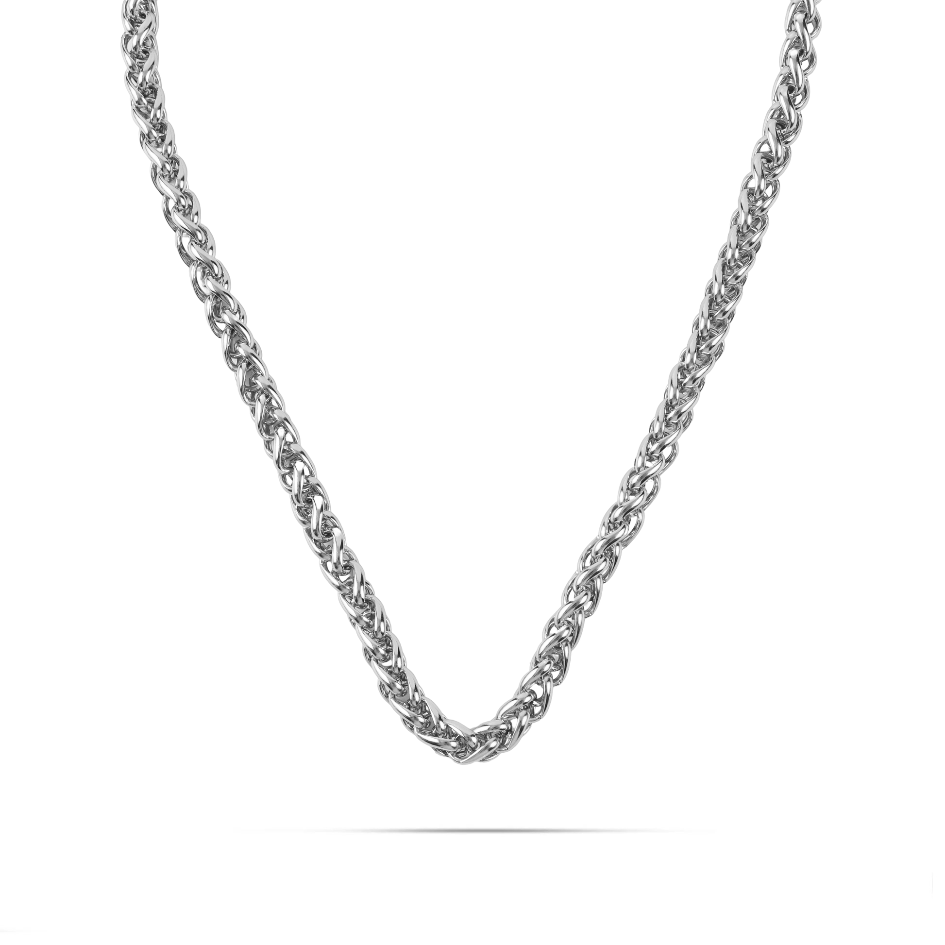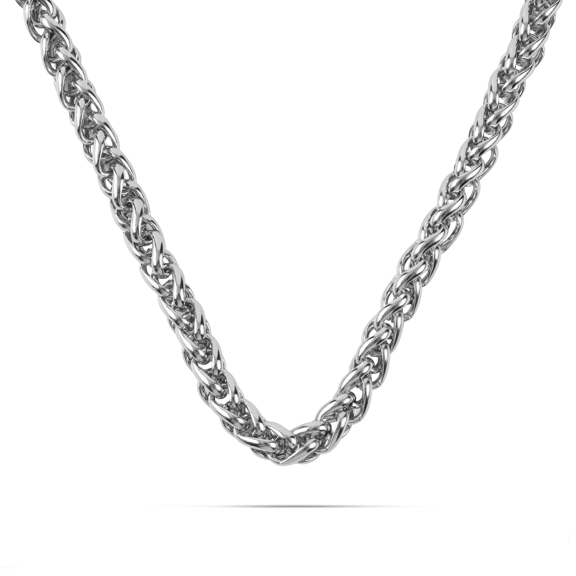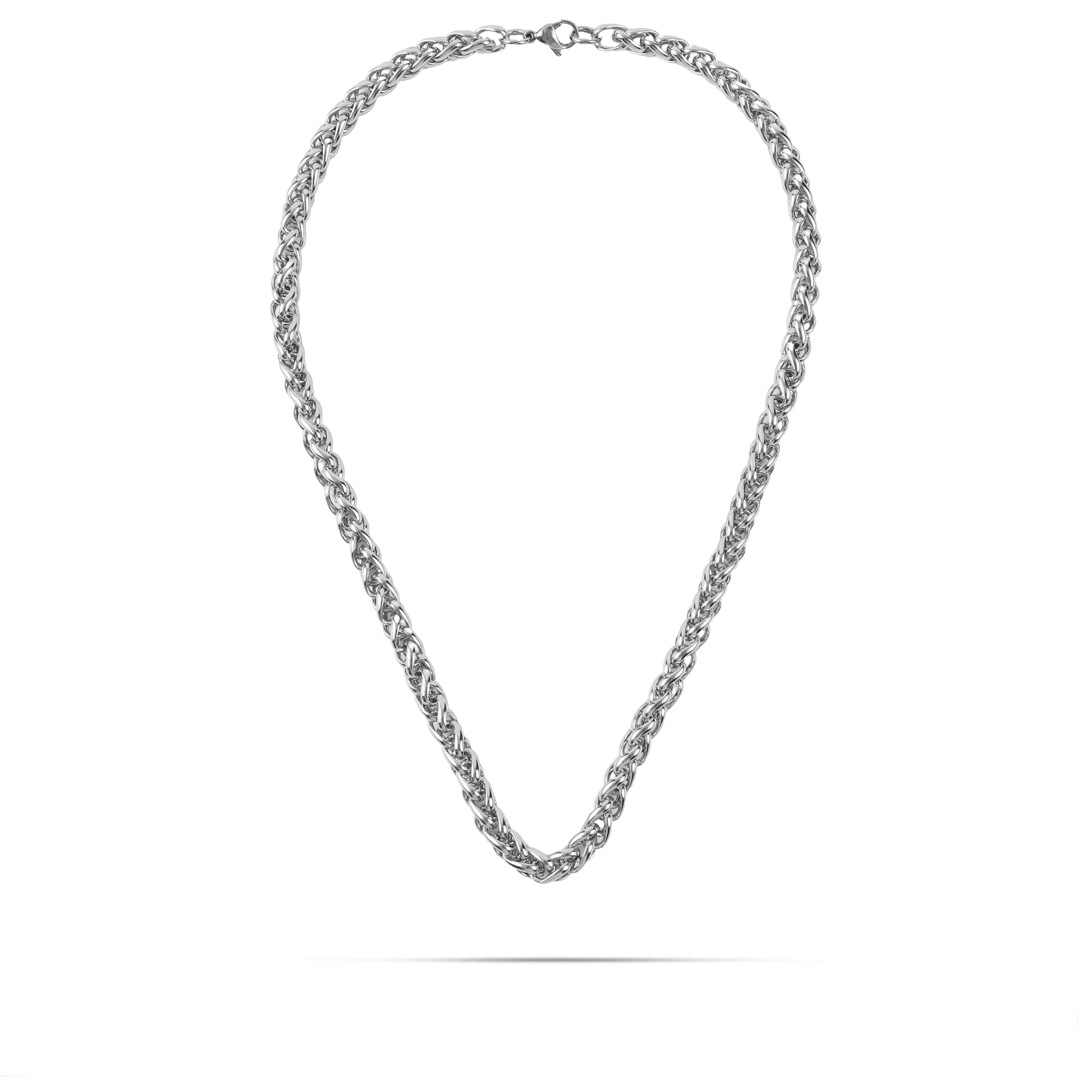 Αλυσίδα λαιμού από ανοξείδωτο ατσάλι σε ασημί χρώμα ,η οποία αποτελεί μια κλασική και διαχρονική επιλογή για κόσμημα. Με αυτήν την απλή αλλά εντυπωσιακή σχεδίαση, η αλυσίδα αυτή μπορεί να φορεθεί μόνη της ή να συνδυαστεί με κολιέ για να προσθέσετε ένα προσωπικό άγγιγμα στο στυλ σας. Η ανοξείδωτη κατασκευή εξασφαλίζει αντοχή και ανθεκτικότητα, ενώ η λαμπερή υφή του ανοξείδωτου ατσαλιού προσδίδει λάμψη στο κόσμημα. Αυτή η αλυσίδα είναι κατάλληλη για καθημερινή χρήση και μπορεί να συνοδεύσει διάφορα στυλ και εμφανίσεις.