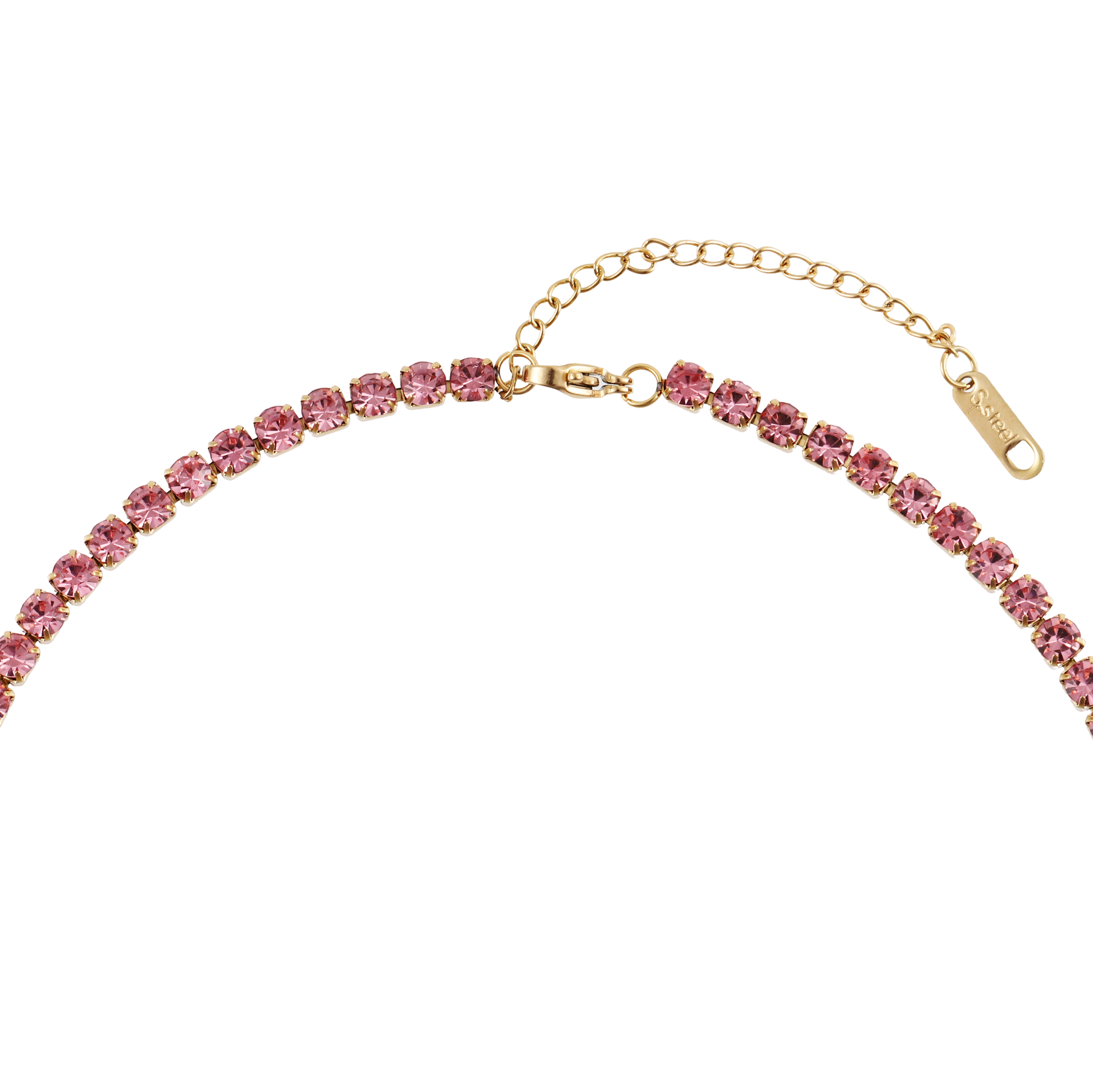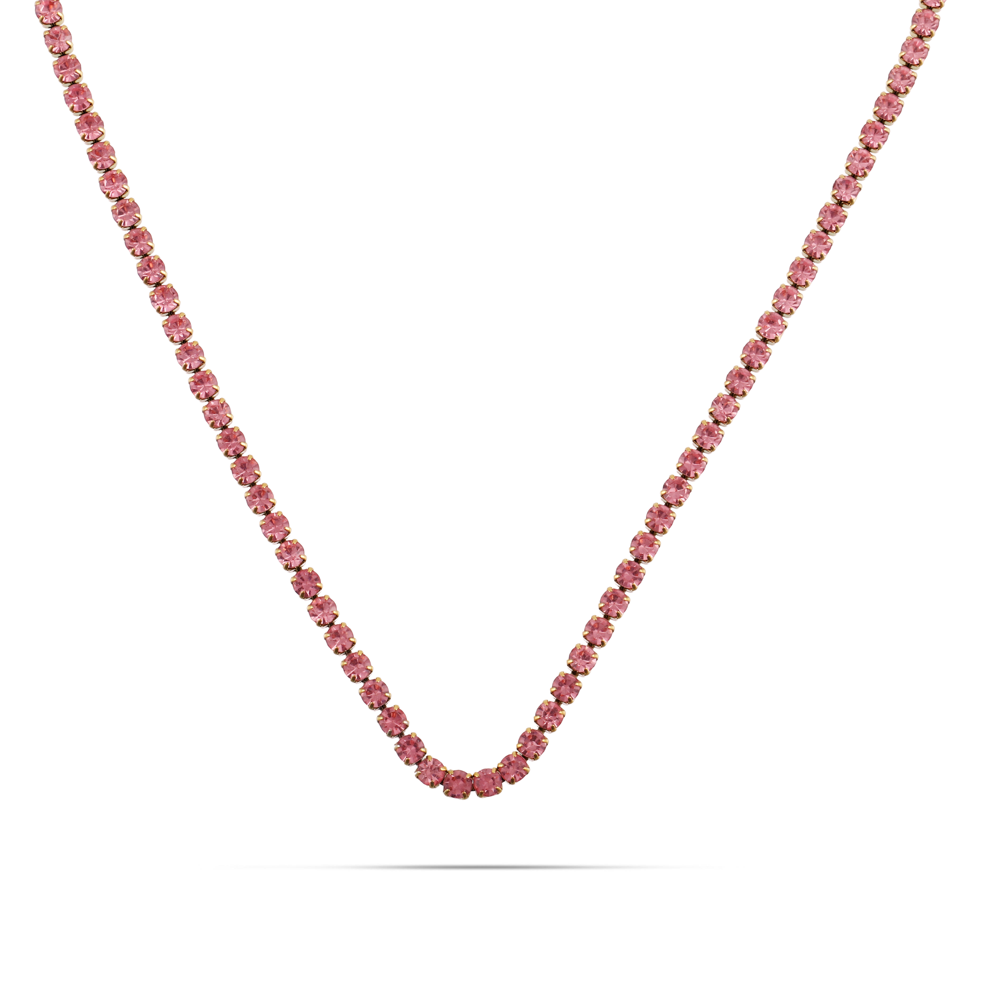 Αλυσίδα λαιμού με πέτρες ζιργκόν σε ροζ χρώμα Mar and Mar Tennis (Pink-Gold)