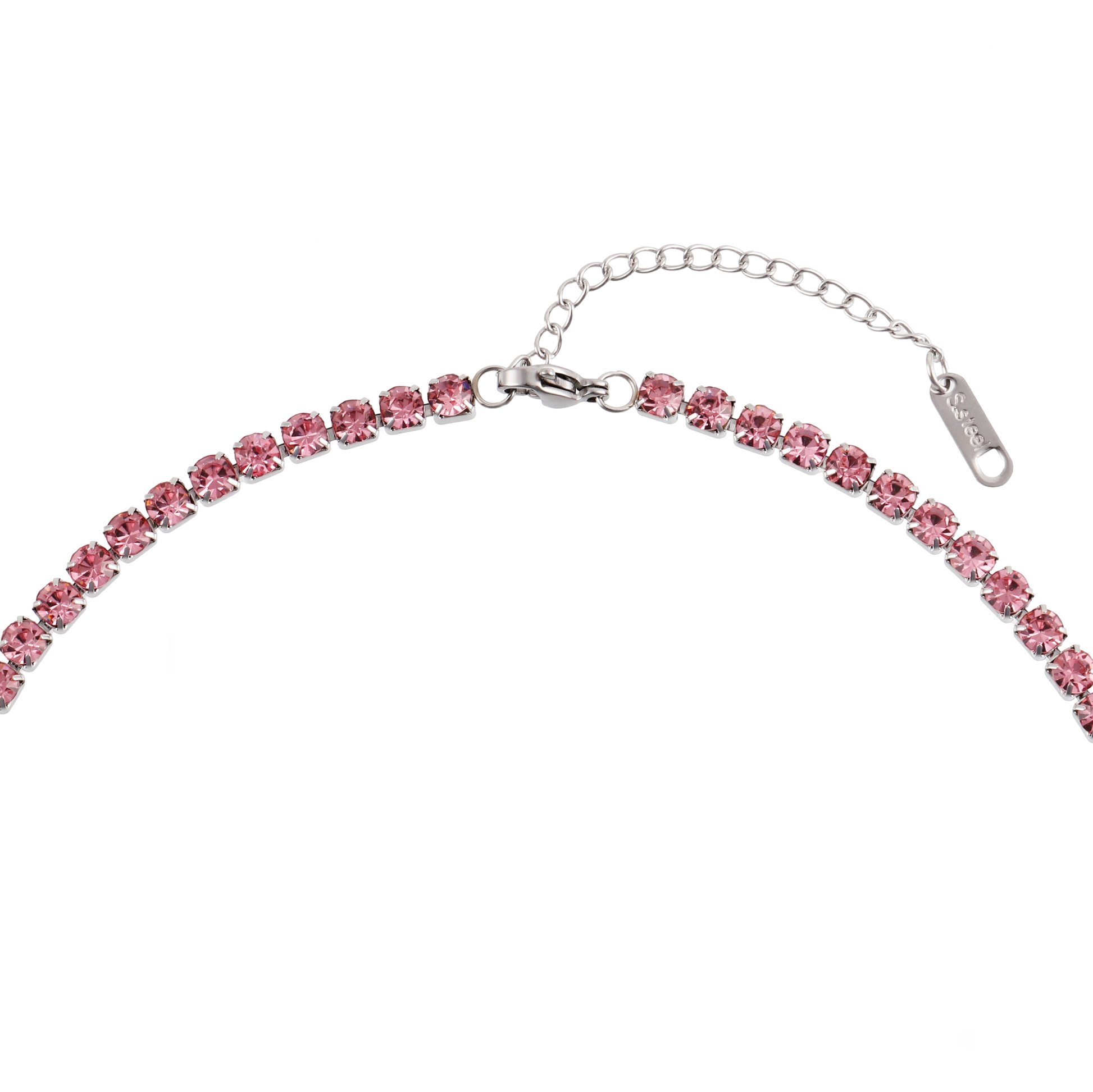 Αλυσίδα λαιμού με πέτρες ζιργκόν σε ροζ χρώμα Mar and Mar Tennis (Pink-Silver)