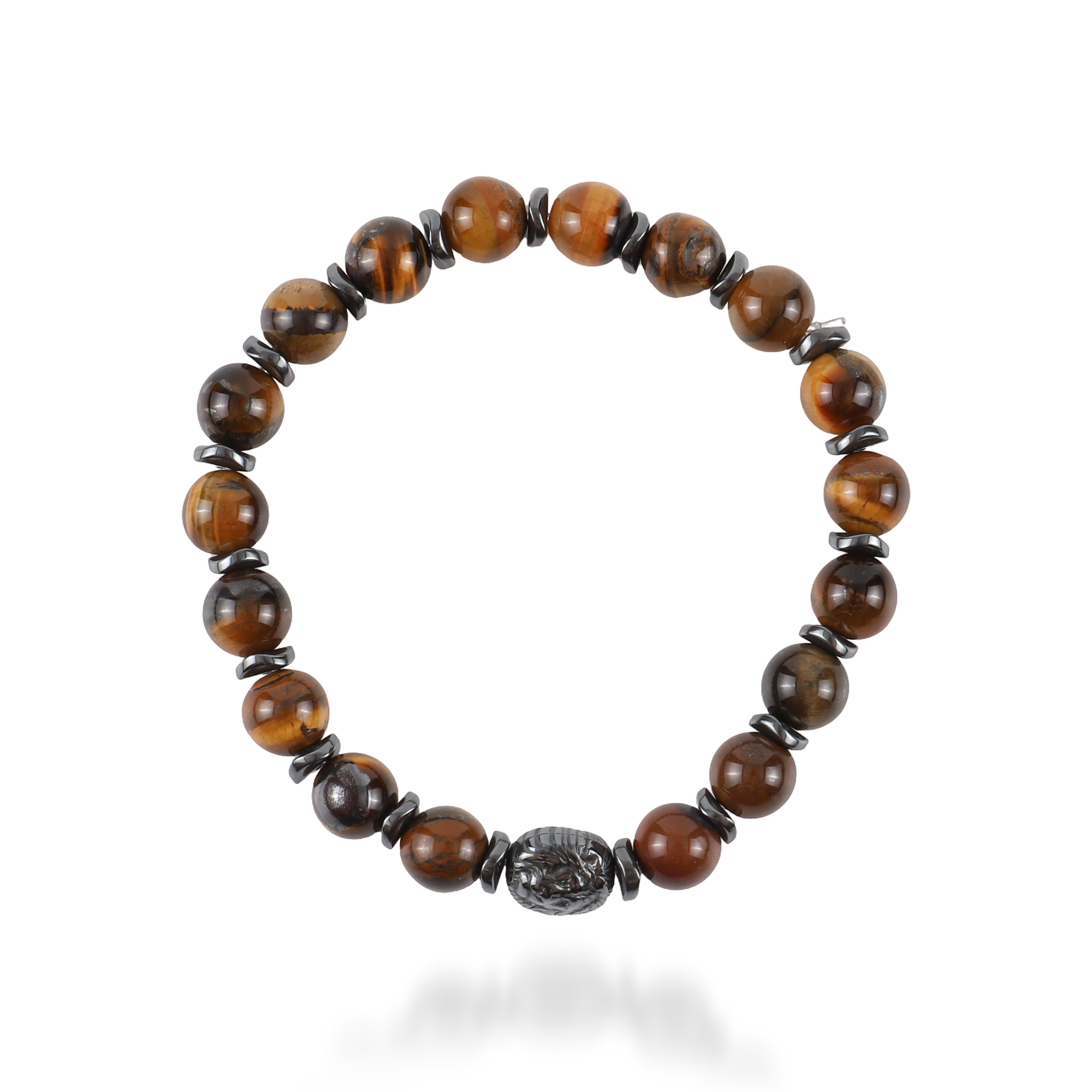 Ανδρικό χειροποίητο βραχιόλι λιοντάρι Mar and Mar Lion με φυσικές ορυκτές πέτρες από Μάτι τίγρη και Αιματίτη