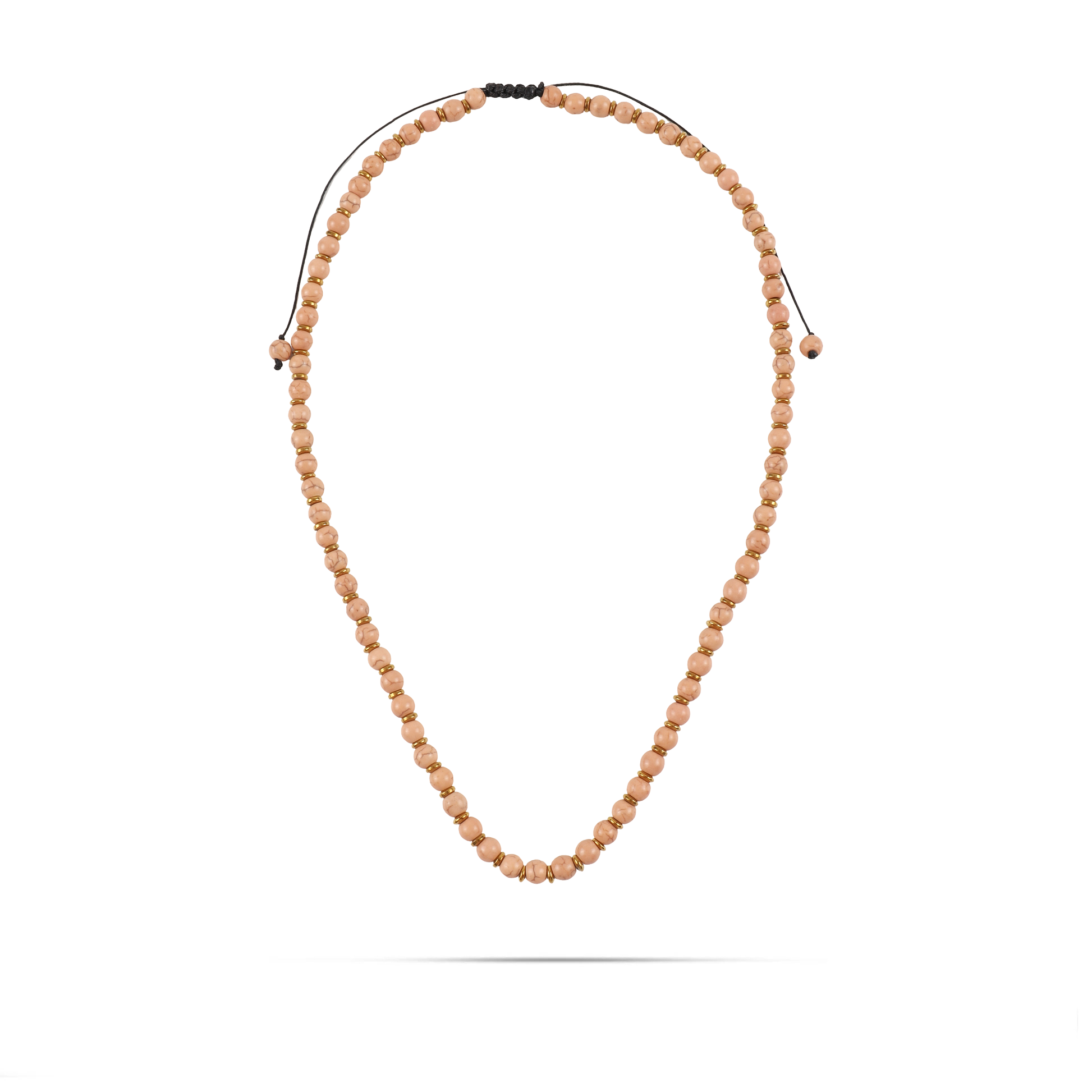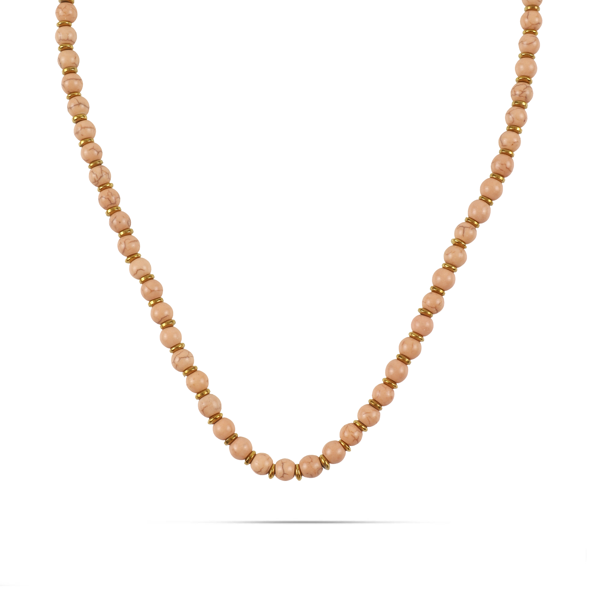 Ανδρικό χειροποίητο κολιέ με φυσικές ορυκτές πέτρες από πορτοκαλί ταγιέ αχάτη (0.6cm) και χρυσές ροδέλες αιματίτη (0.4cm).