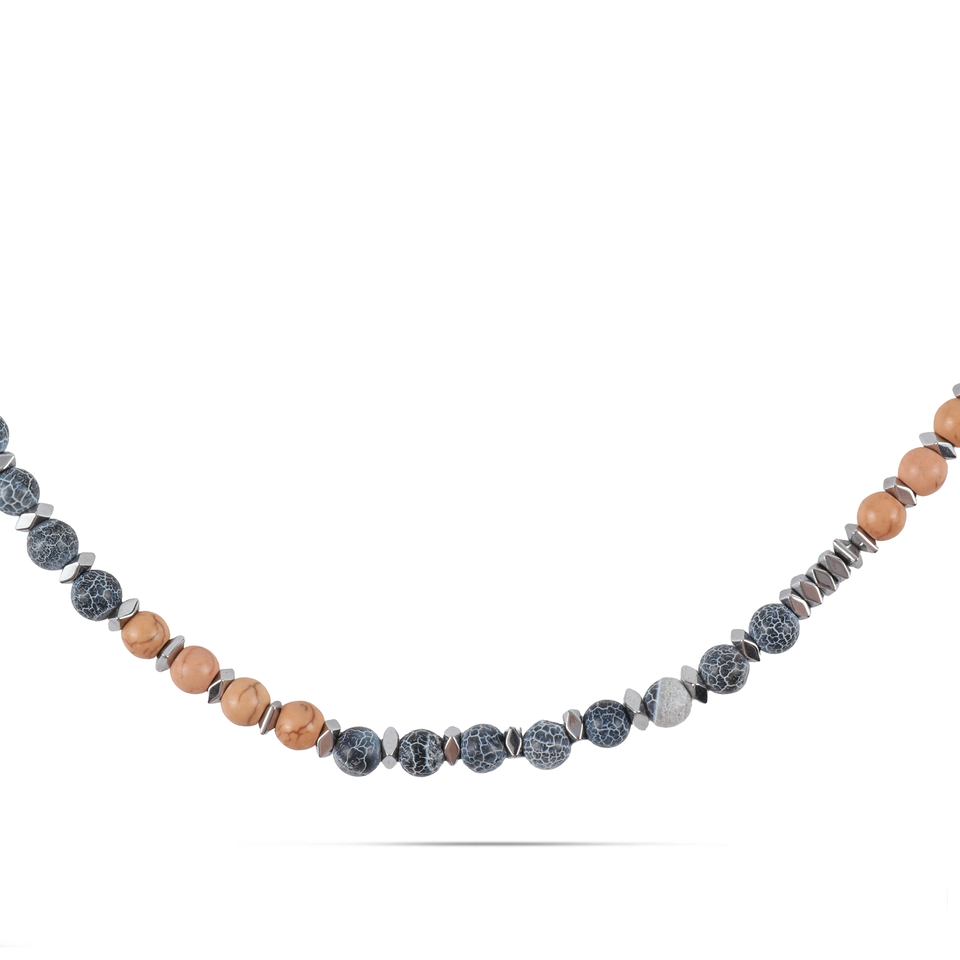 Ανδρικό χειροποίητο κολιέ Mar and Mar Valore με φυσικές ορυκτές πέτρες Αχάτη και Αιματίτη