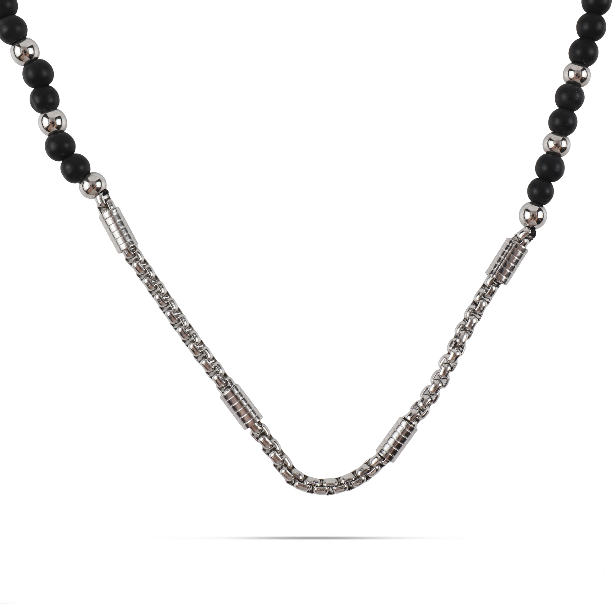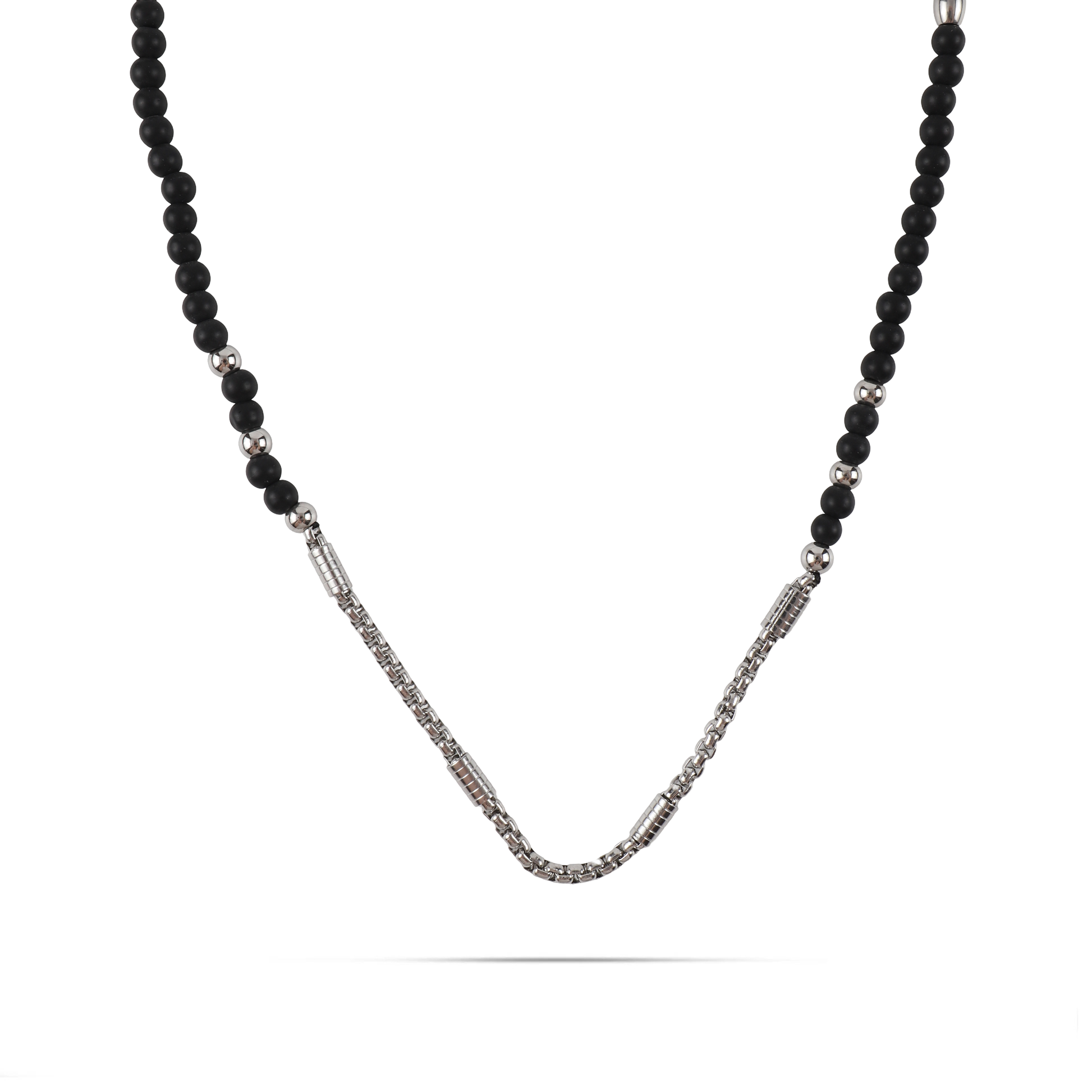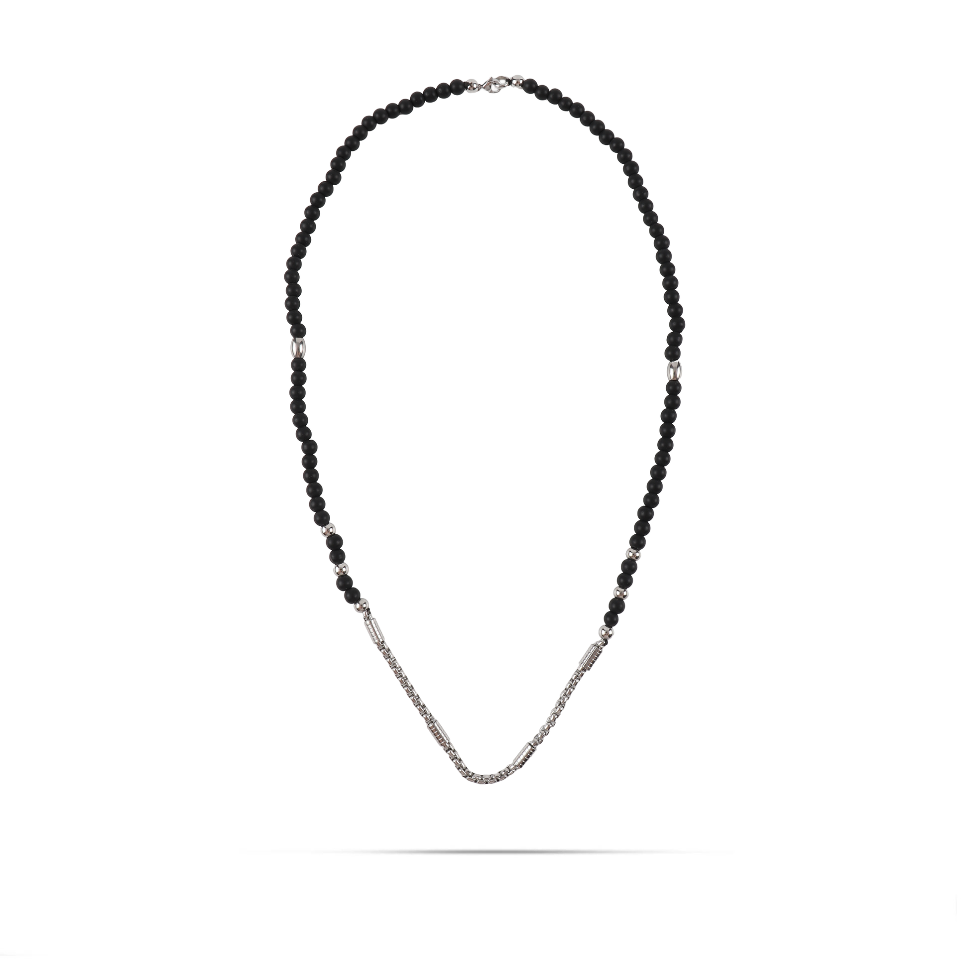 Ανδρικό χειροποίητο κολιέ με αλυσίδα Square Barrel και φυσικές ορυκτές πέτρες από Όνυχα (0.6cm) και ασημί μπίλιες αιματίτη (0.6cm).