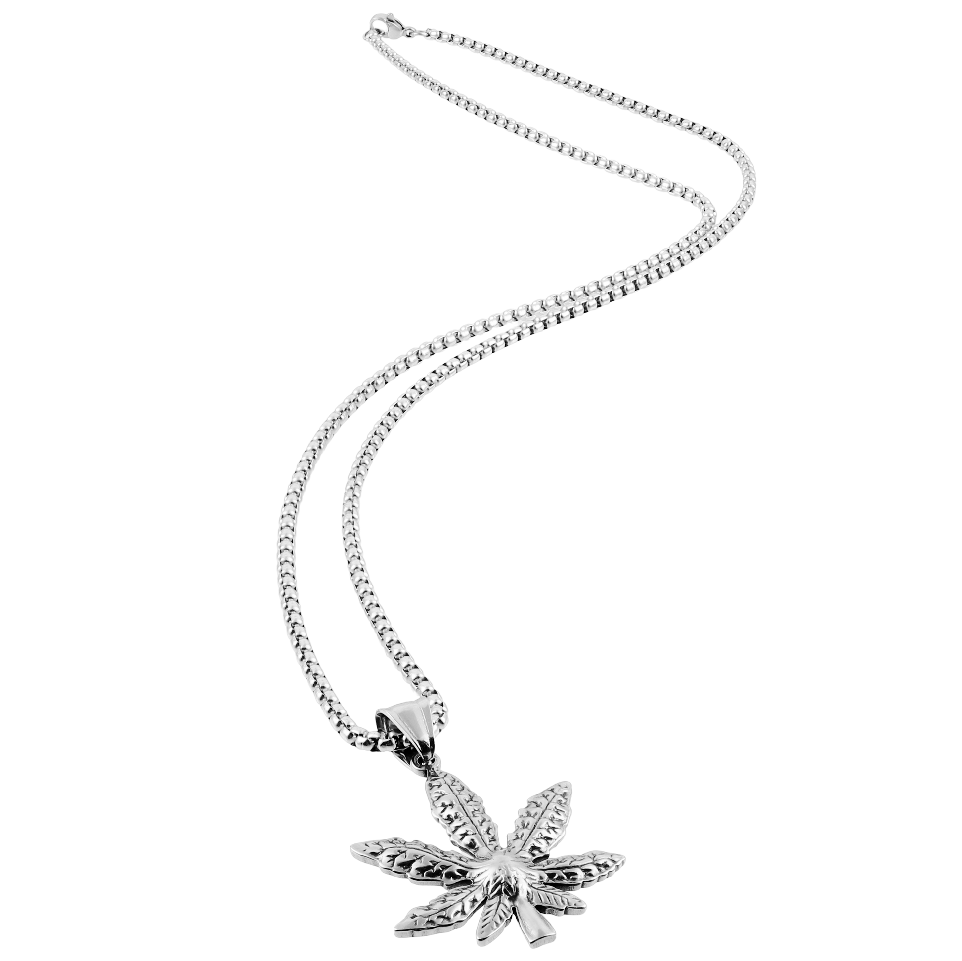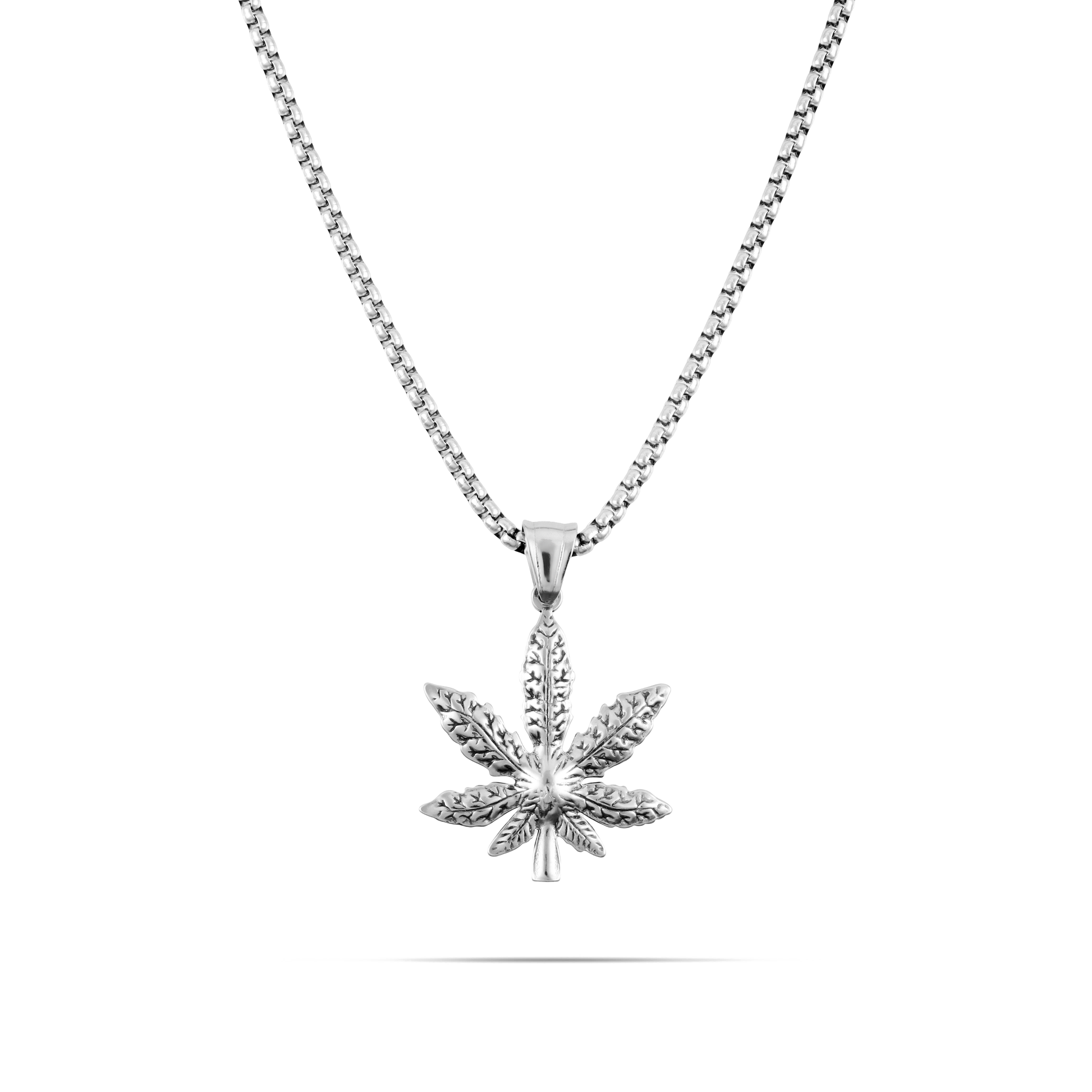 Kολιέ με μενταγιόν Cannabis από ανοξείδωτο ατσάλι σε ασημί χρώμα. Μία εντυπωσιακή αλυσίδα για τον λαιμό σας με μενταγιόν Cannabis με ανάγλυφο για hardcore εμφανίσεις!