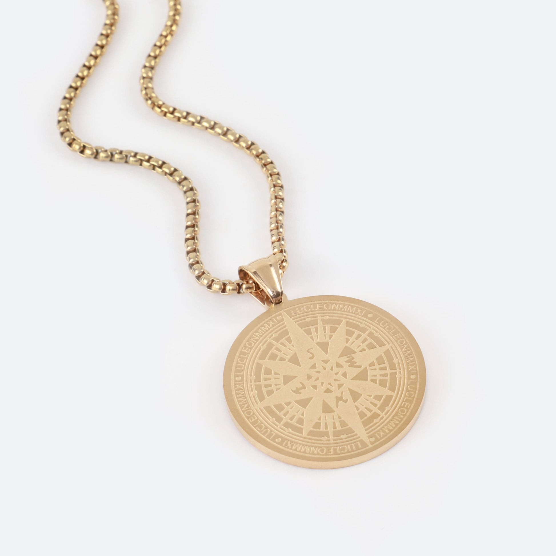 Το κολιέ Compass διαθέτει μενταγιόν 5 cm σε σχήμα στρόγγυλης πυξίδας, προσφέροντας ένα δυναμικό και μοντέρνο σχέδιο για κάθε εμφάνιση. Το διπλά επιχρυσωμένο 18Κ ανοξείδωτο ατσάλι χαρίζει λάμψη και ανθεκτικότητα, καθιστώντας το κολιέ ιδανικό για καθημερινή χρήση ή για πιο επίσημες περιστάσεις.