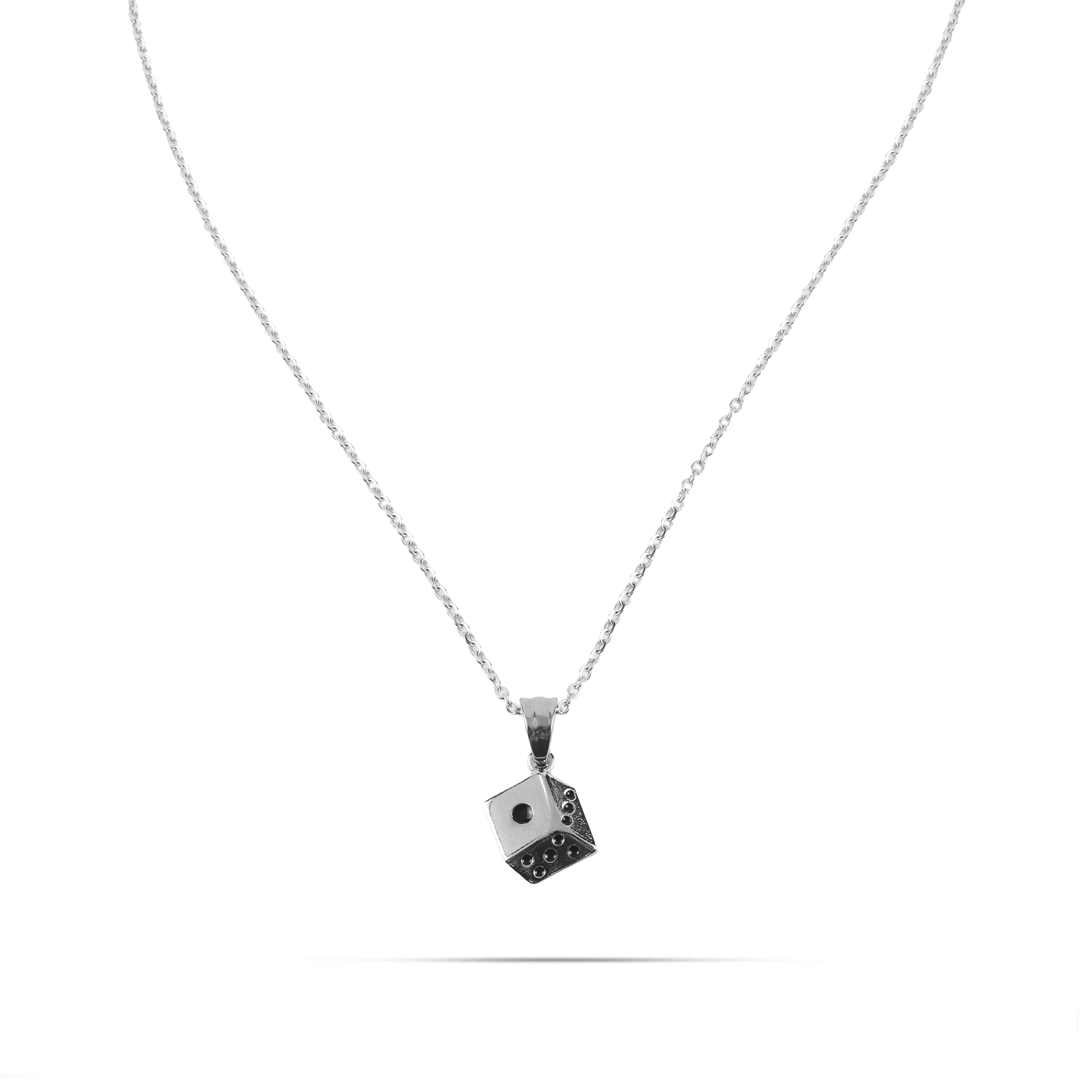 Κολιέ Dice από ανοξείδωτο ατσάλι σε ασημί χρώμα. Ένα μοναδικό κόσμημα για το λαιμό σας με μενταγιόν ζάρι με ανάγλυφες μαύρες λεπτομέρειες με τους αριθμούς που θα λατρέψετε!