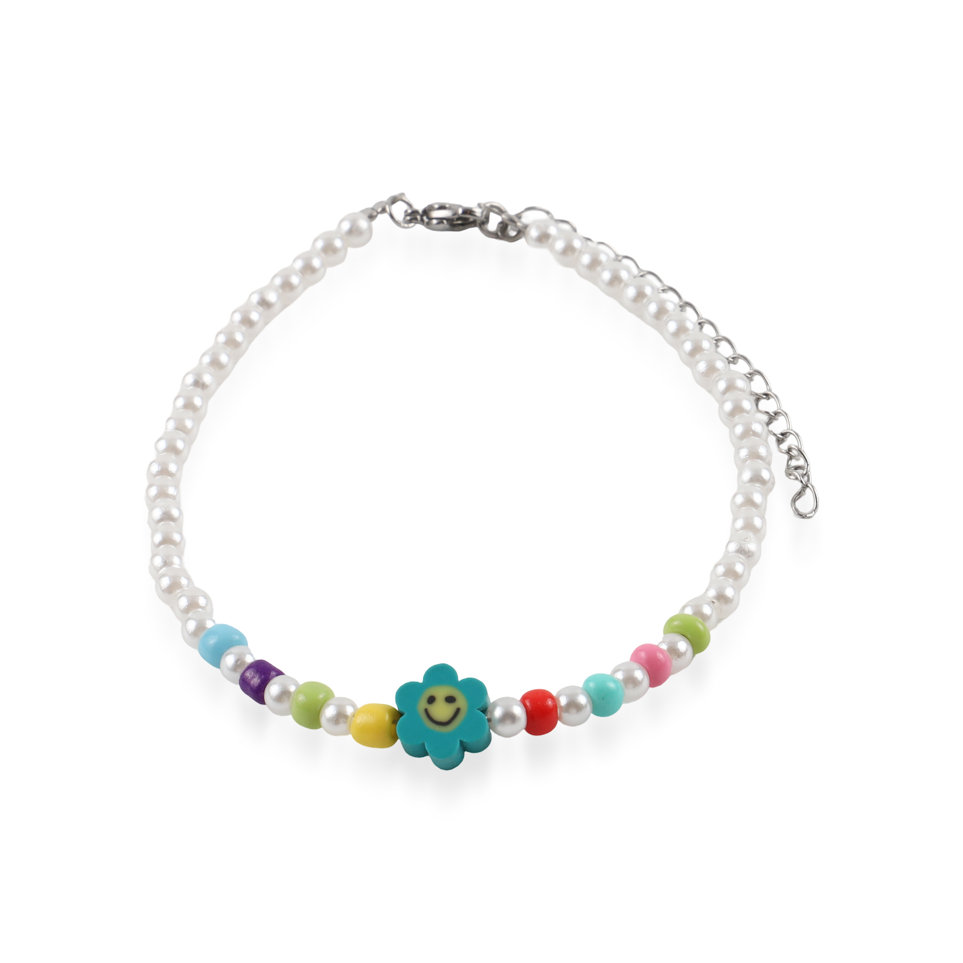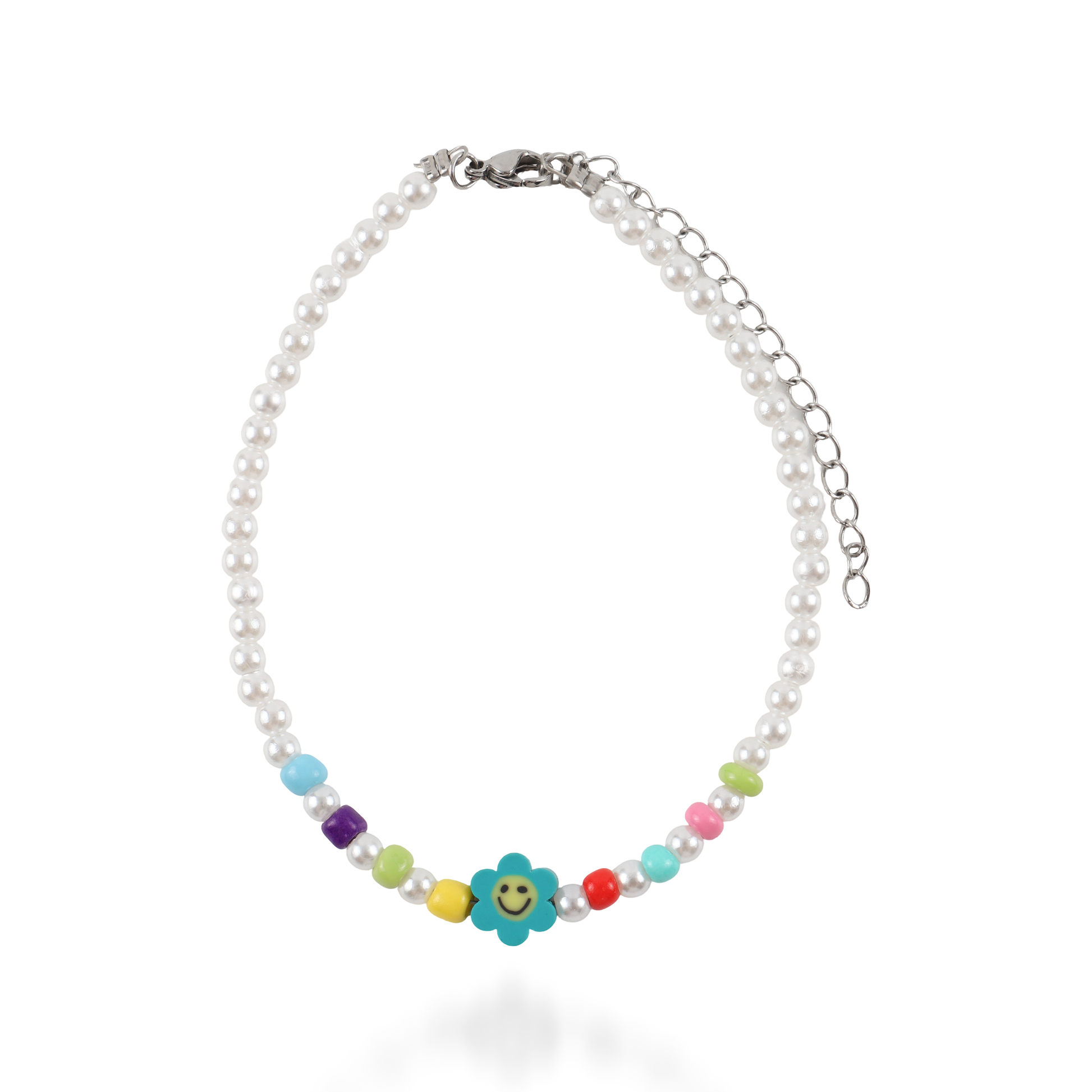 Η χειροποίητη αλυσίδα ποδιού από ανοξείδωτο ατσάλι σε ασημί χρώμα, διακοσμημένη με μικρές λευκές πέρλες, πολύχρωμες χάντρες και ένα λουλουδάκι στο κέντρο, είναι ένα εντυπωσιακό κόσμημα που συνδυάζει την κομψότητα με τον παιχνιδιάρικο χαρακτήρα. Το λουλούδι στο κέντρο προσδίδει μια αέρινη και φρέσκια αισθητική, ενώ οι πολύχρωμες χάντρες προσθέτουν έναν χαρούμενο τόνο. Αυτή η αλυσίδα ποδιού είναι ιδανική για τις καλοκαιρινές σας εμφανίσεις και θα προσθέσει μια ανάλαφρη πινελιά στο πόδι σας.