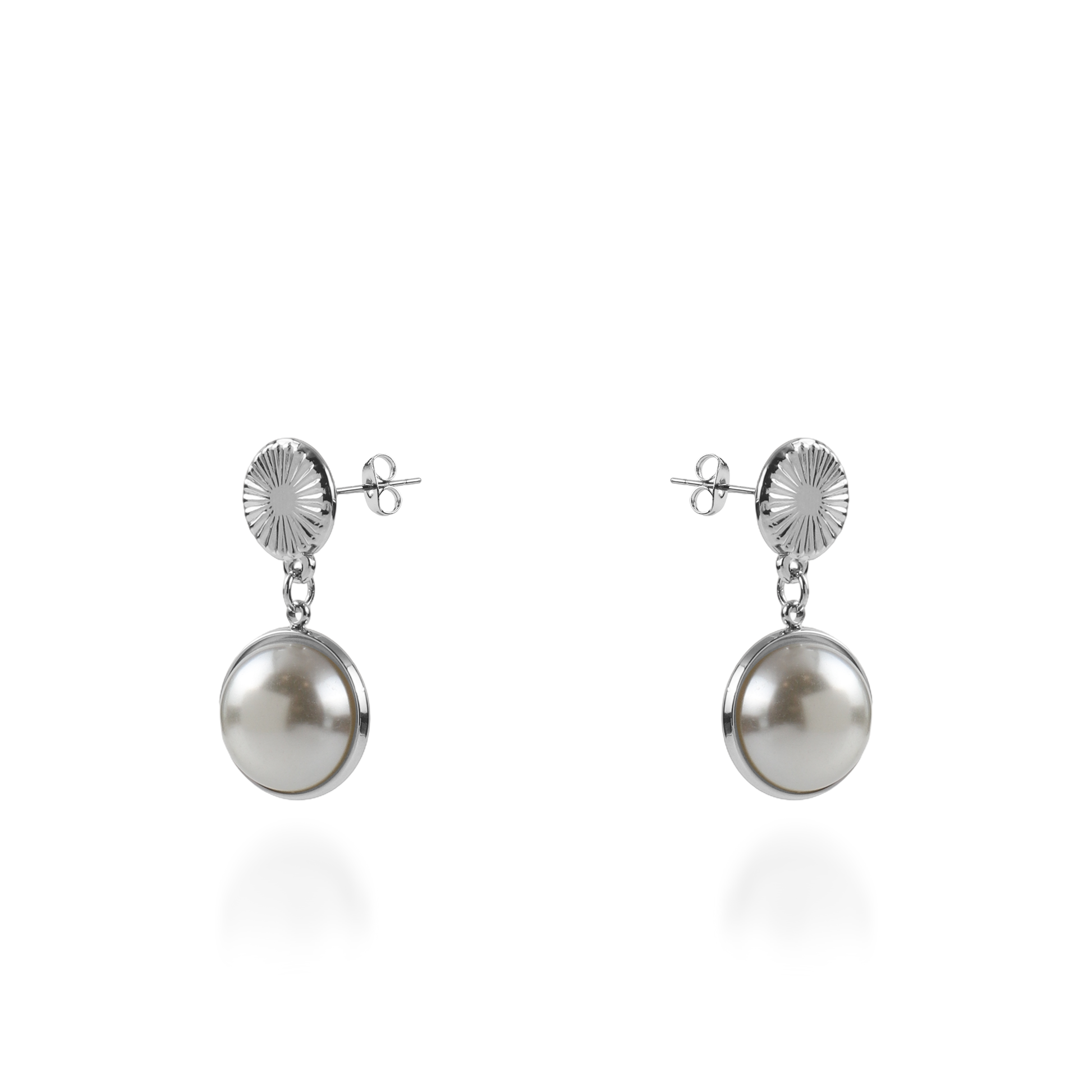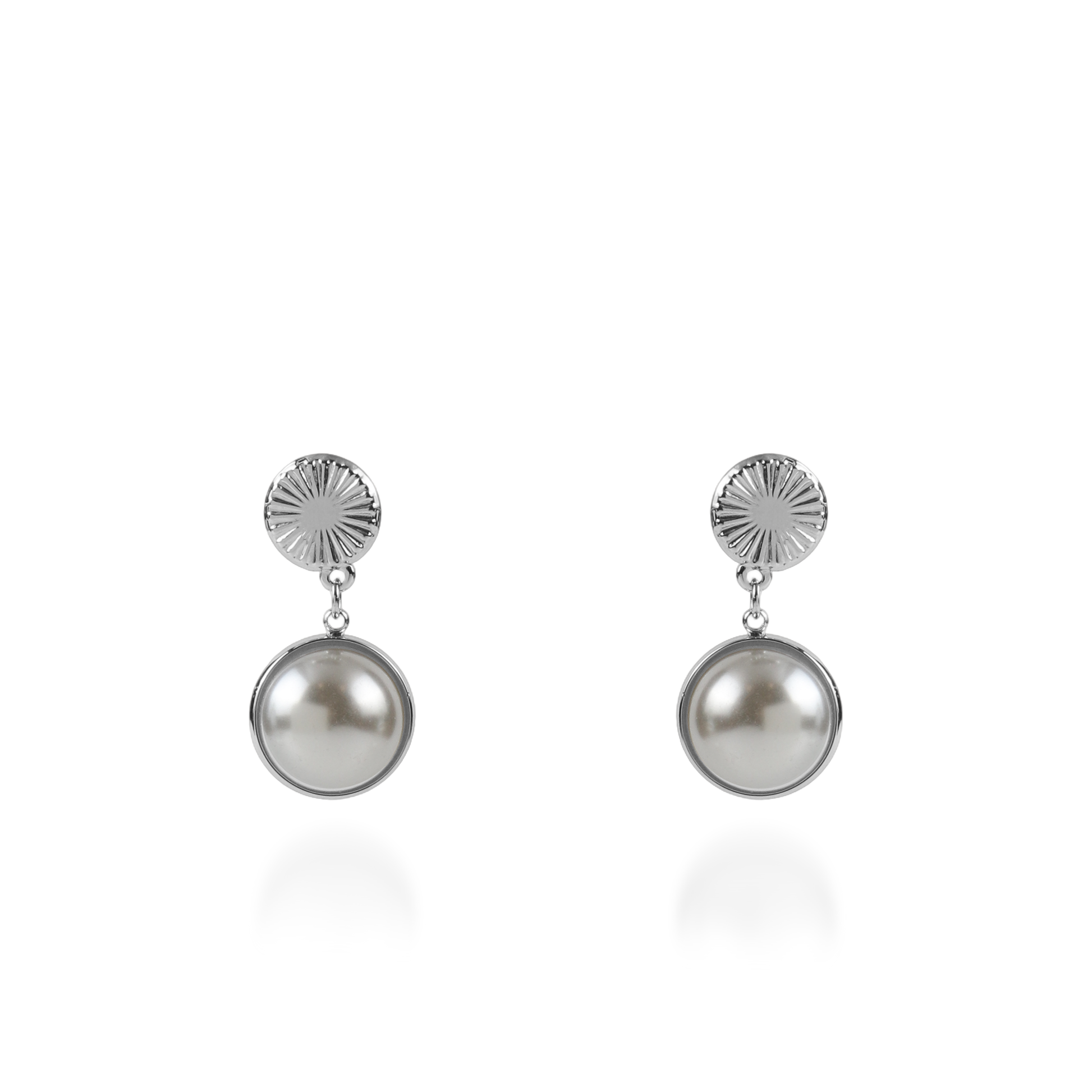 Σκουλαρίκια κρεμαστά με ιδιαίτερο σχέδιο διακοσμημένο με λαμπερή πέρλα που προσδίδει λάμψη στην εμφάνισή σας. Αυτό το εντυπωσιακό κόσμημα μπορεί να φορεθεί με επίσημα ή καθημερινά ντυσίματα, προσθέτοντας στυλ σε κάθε εμφάνιση.