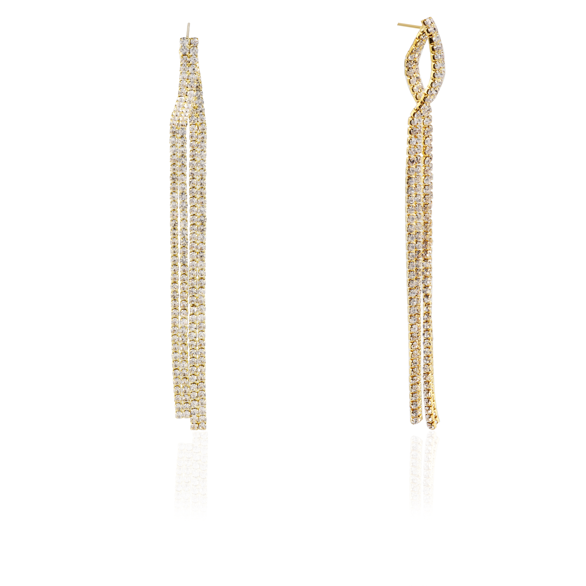 Σκουλαρίκια κρεμαστά διακοσμημένα με πέτρες Zircon που προσθέτουν φωτεινότητα και γοητεία στο στυλ σας. Είναι κατάλληλα για κάθε περίσταση, από τις καθημερινές εμφανίσεις μέχρι τις επίσημες εκδηλώσεις, προσφέροντας λάμψη και κομψότητα σε κάθε εμφάνιση.
