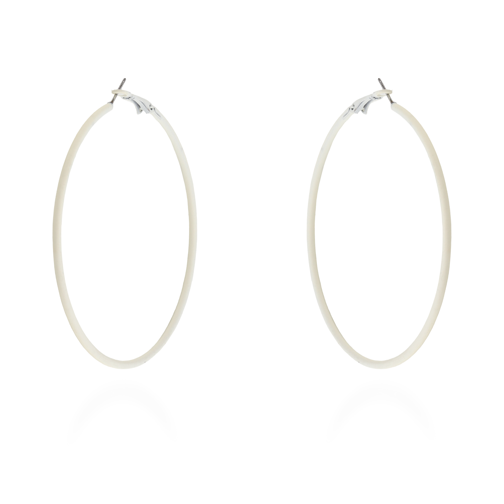 Σκουλαρίκια κρίκοι σε λευκό χρώμα με ματ υφή σε όλη τους την επιφάνεια ένα κομψό κόσμημα για το στυλ σας. Αυτό το στυλ μπορεί να συνδυαστεί εύκολα με διάφορα ντυσίματα και να φορεθεί καθημερινά ή σε επίσημες περιστάσεις, προσθέτοντας κομψότητα στο σύνολό σας.