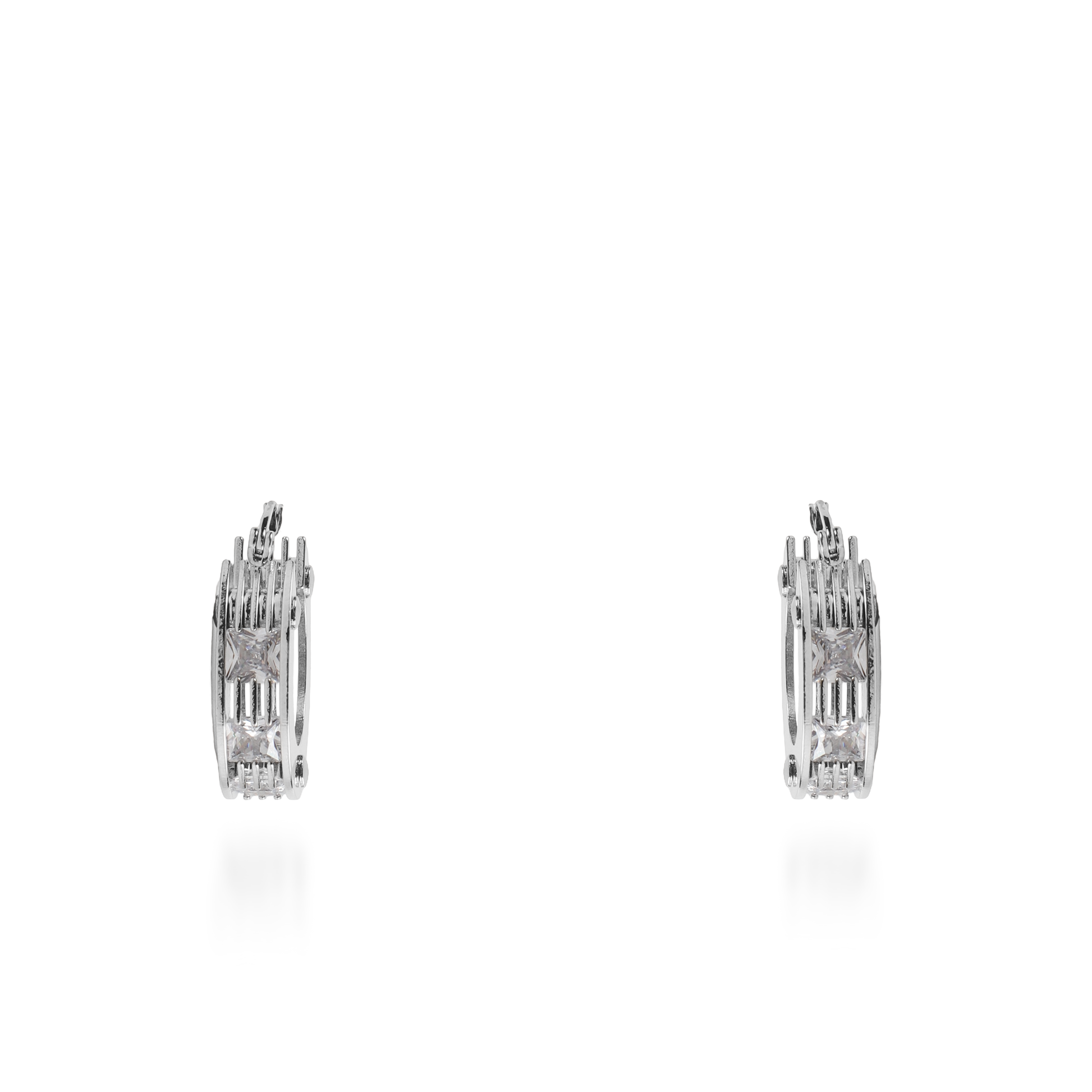 Σκουλαρίκια κρίκοι διακοσμημένα με λαμπερές πέτρες Zircon ένα εντυπωσιακό και κομψό κόσμημα για κάθε εμφάνιση. Αυτό το στυλ σκουλαρικιών είναι κλασικό και κατάλληλο για κάθε περίσταση, προσφέροντας μια διακριτική και λαμπερή πινελιά στο ντύσιμό σας.