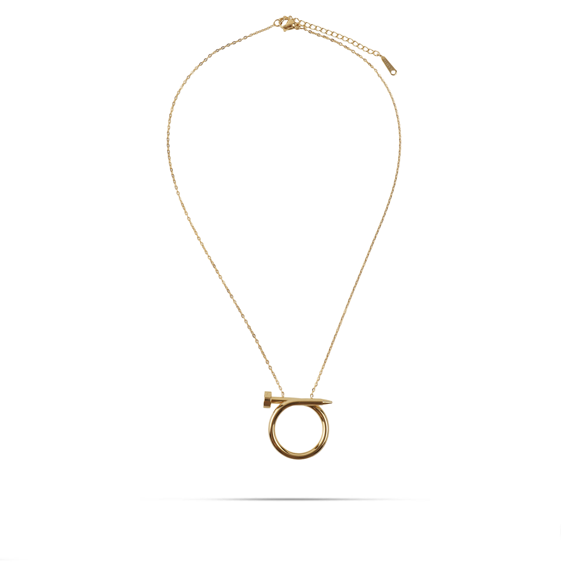 Κολιέ από ανοξείδωτο ατσάλι με μενταγιόν σε σχήμα καρφιού. Είναι ένα κομψό και μοντέρνο κολιέ που μπορεί να φορεθεί μόνο του ή να συνδυαστεί με άλλα κοσμήματα για ένα εντυπωσιακό αποτέλεσμα. Ιδανικό για καθημερινές εμφανίσεις καθώς και για ειδικές περιστάσεις.