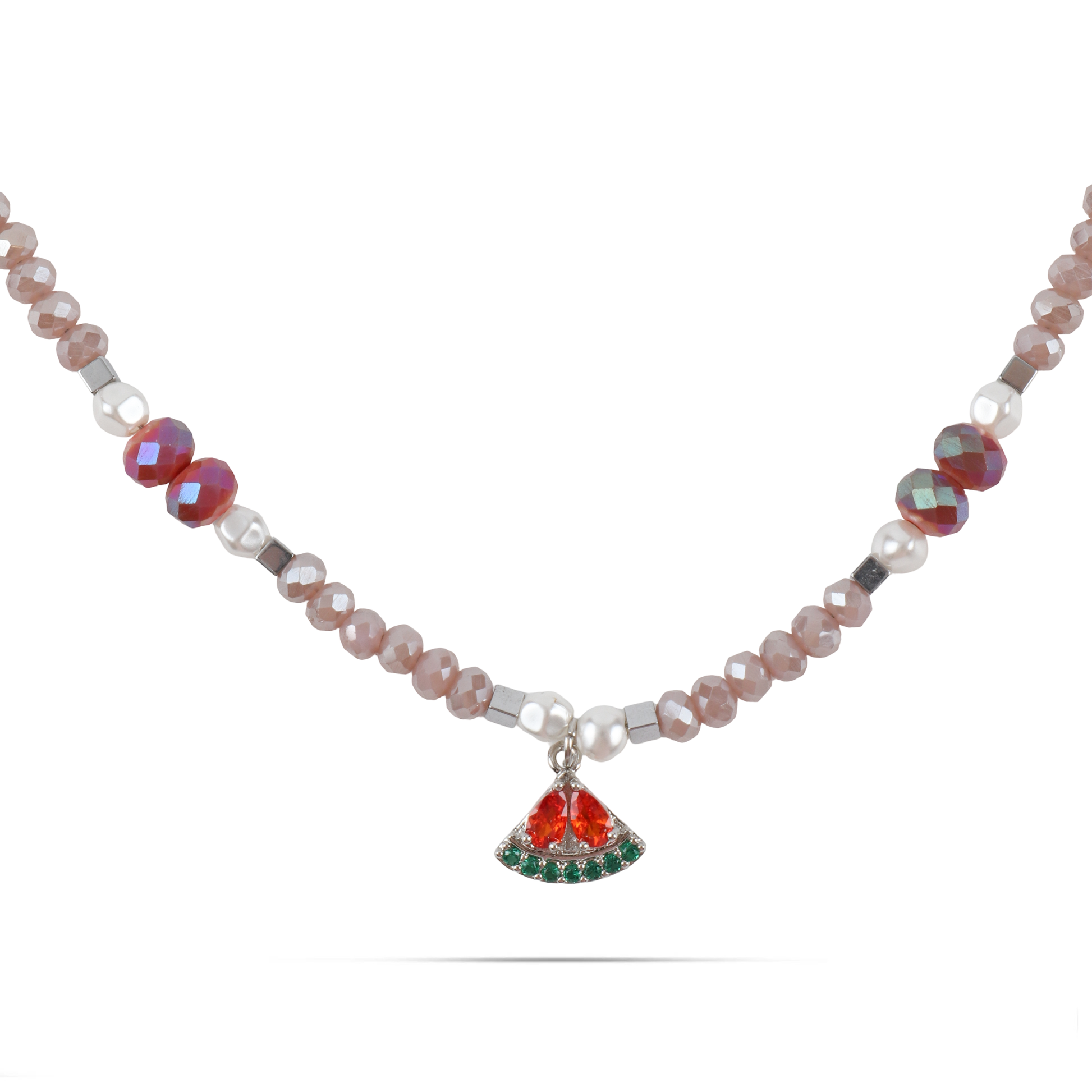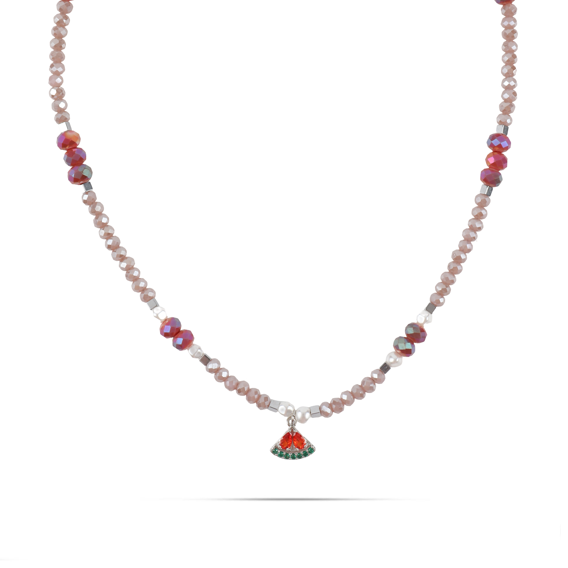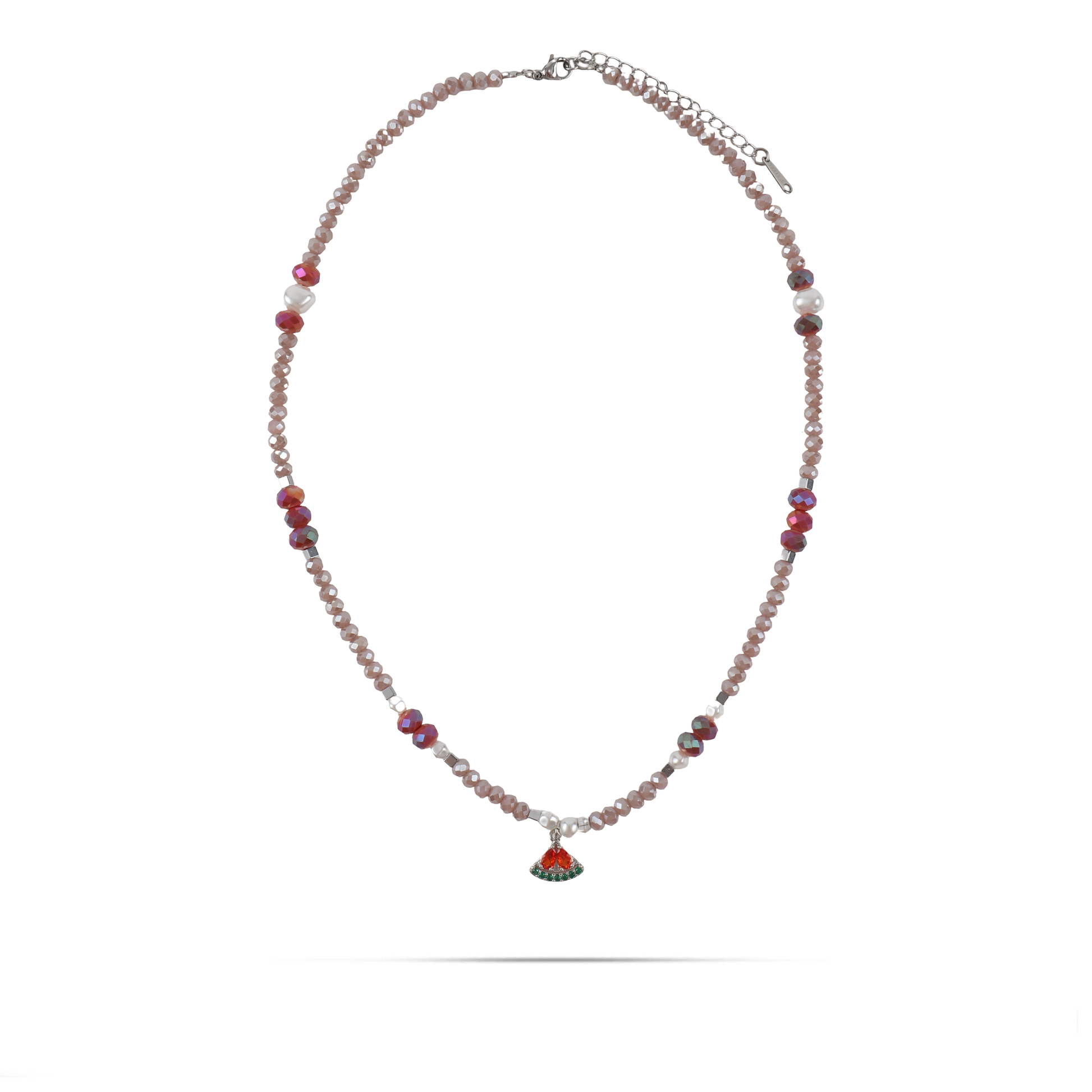 Κολιέ χειροποίητο καρπούζι με πέρλες και χάντρες Mar and Mar Racine από ανοξείδωτο ατσάλι