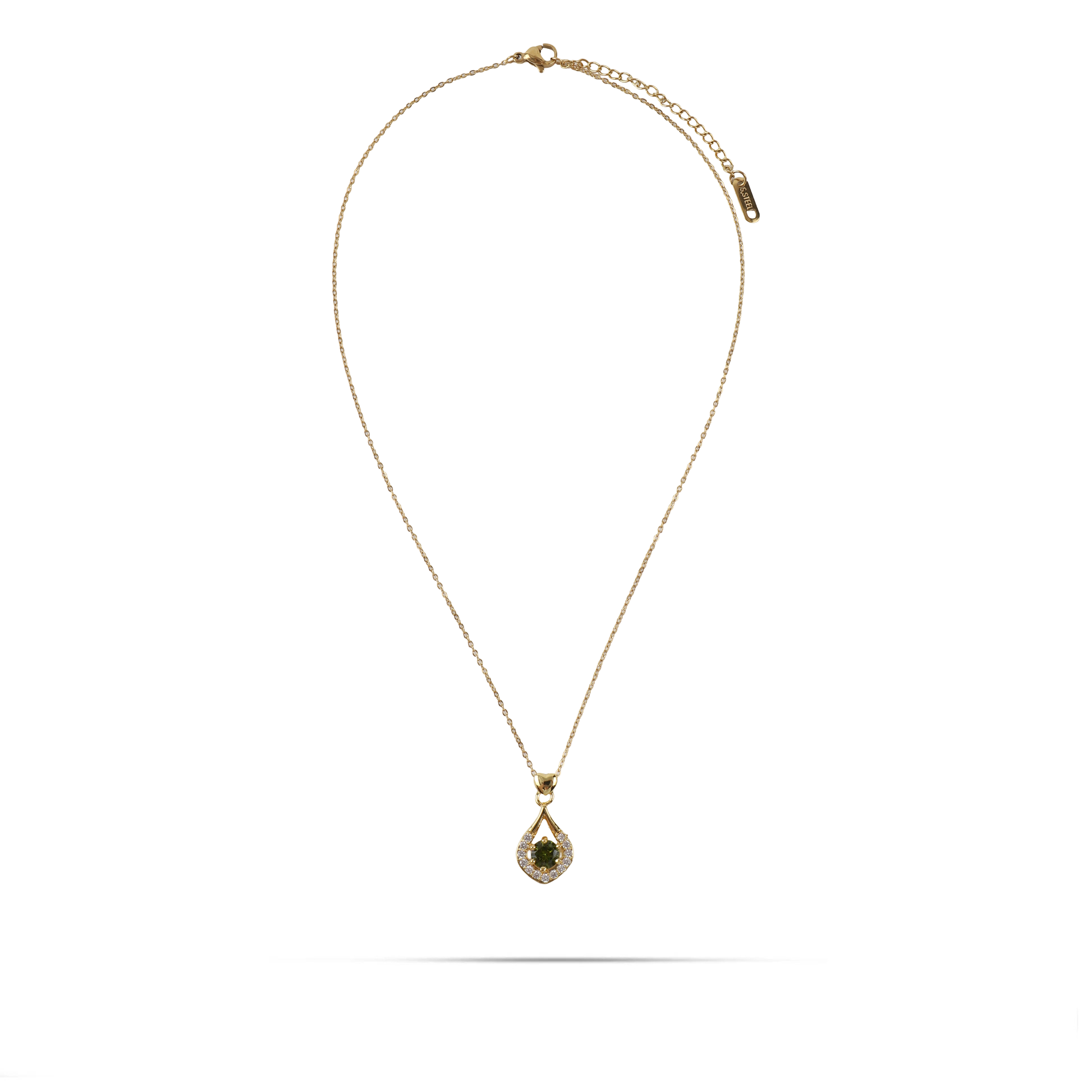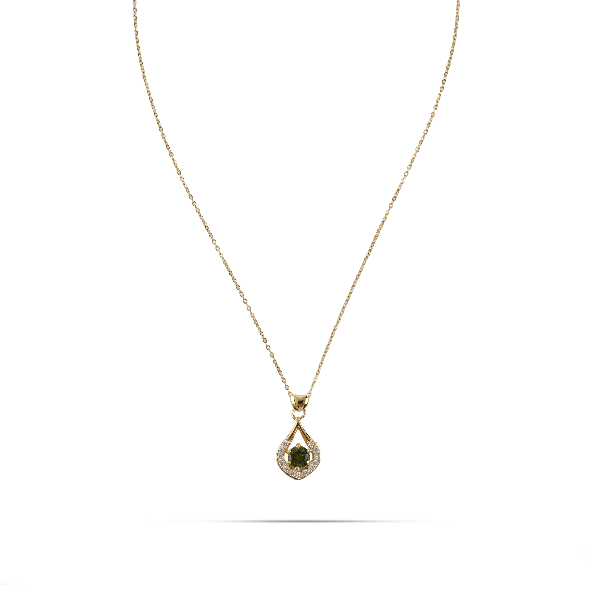 Κολιέ με μενταγιόν δάκρυ διακοσμημένο με μία καρδιά και με λευκές πέτρες Zircon περιμετρικά, πράσινη πέτρα Zircon σε σχήμα δάκρυ στο κέντρο. Είναι ιδανικό για να προσθέσετε μια πινελιά λάμψης στο καθημερινό σας look ή να το φορέσετε σε ειδικές περιστάσεις. Επίσης, αποτελεί μια υπέροχη επιλογή δώρου για τα αγαπημένα σας πρόσωπα.