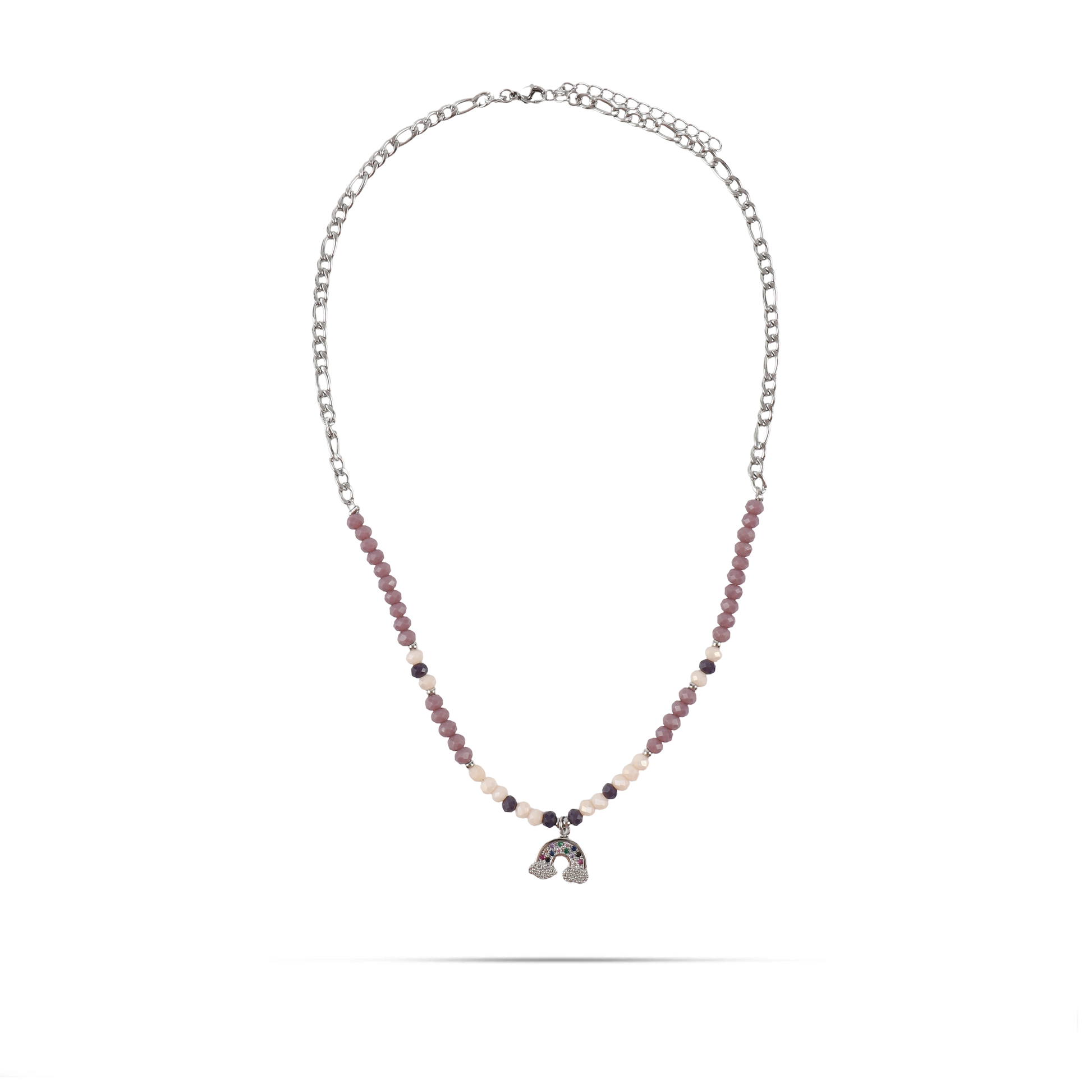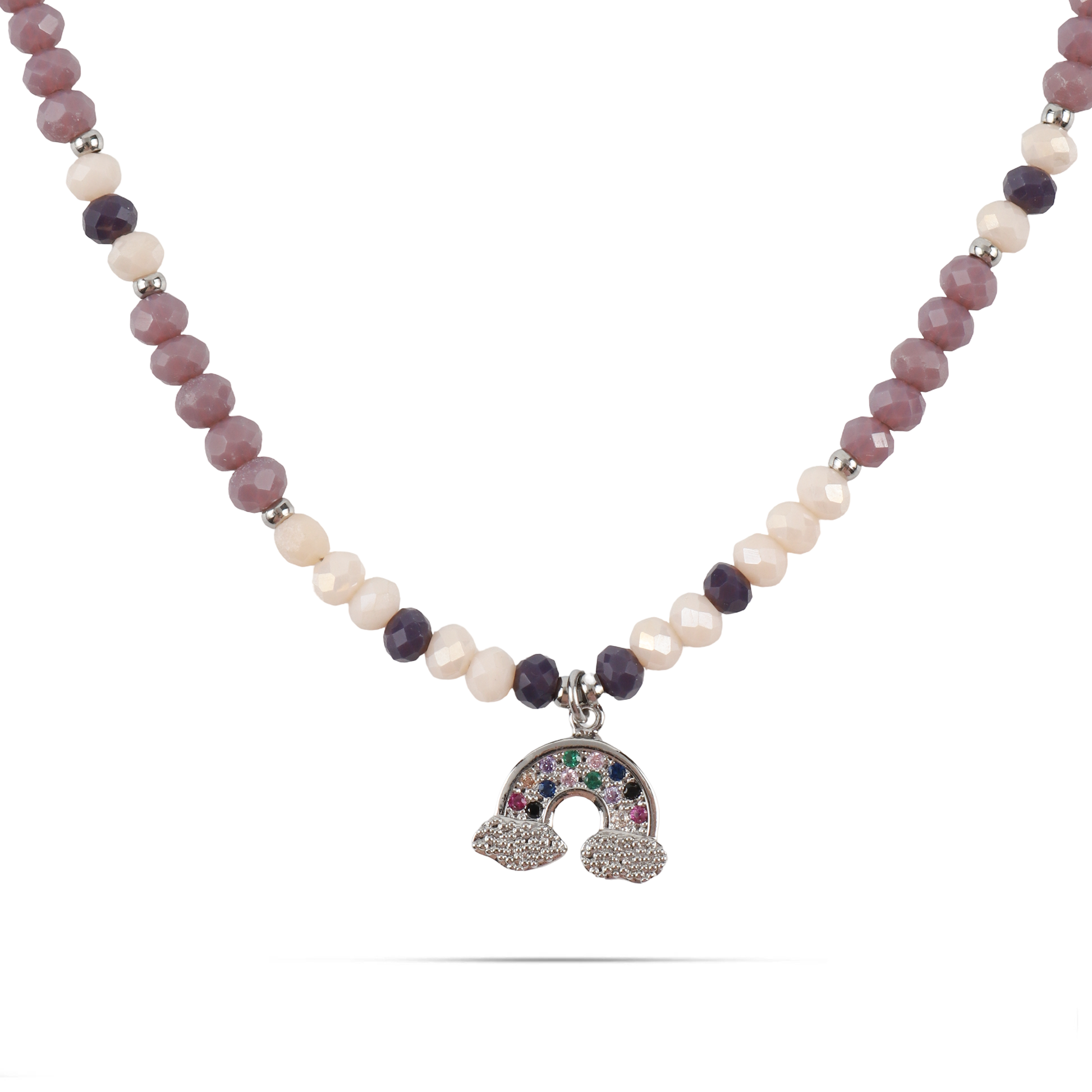 Κολιέ χειροποίητο ουράνιο τόξο με χάντρες και πέτρες ζιργκόν Mar and Mar Rainbow Necklace από ανοξείδωτο ατσάλι
