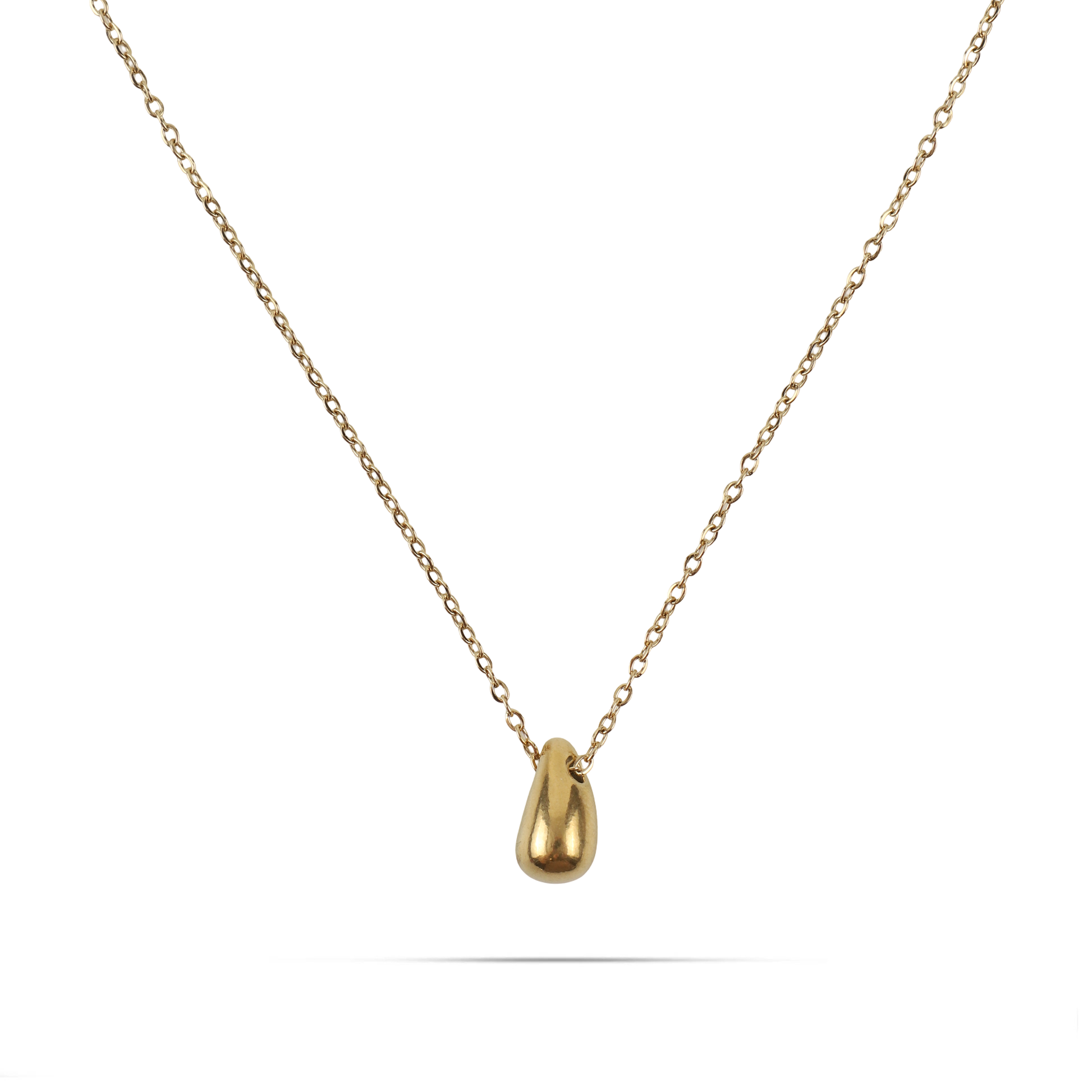 Κολιέ από ανοξείδωτο ατσάλι σε χρυσό χρώμα με μενταγιόν σε σχήμα σταγόνας νερού. Το μενταγιόν αυτό προσφέρει μια κομψή εμφάνιση, ενώ η χρήση ανοξείδωτου ατσαλιού του προσδίδει αντοχή και ανθεκτικότητα. Ιδανικό για να φορεθεί σε καθημερινές εμφανίσεις καθώς και σε ειδικές περιστάσεις. Επίσης μπορεί να αποτελέσει ένα εξαίσιο δώρο για κάποιο αγαπημένο πρόσωπο.