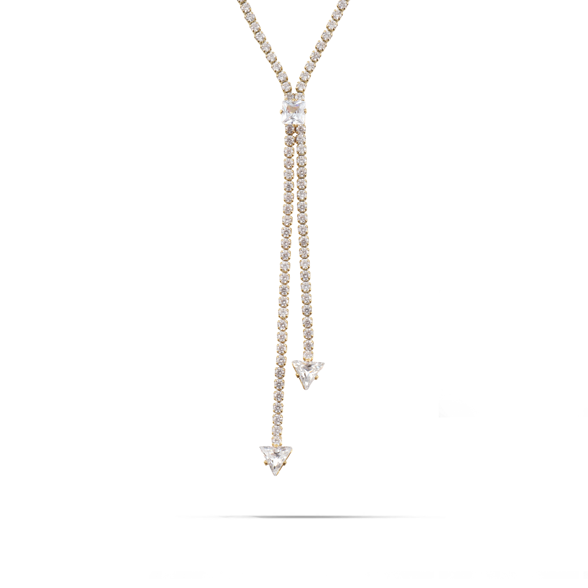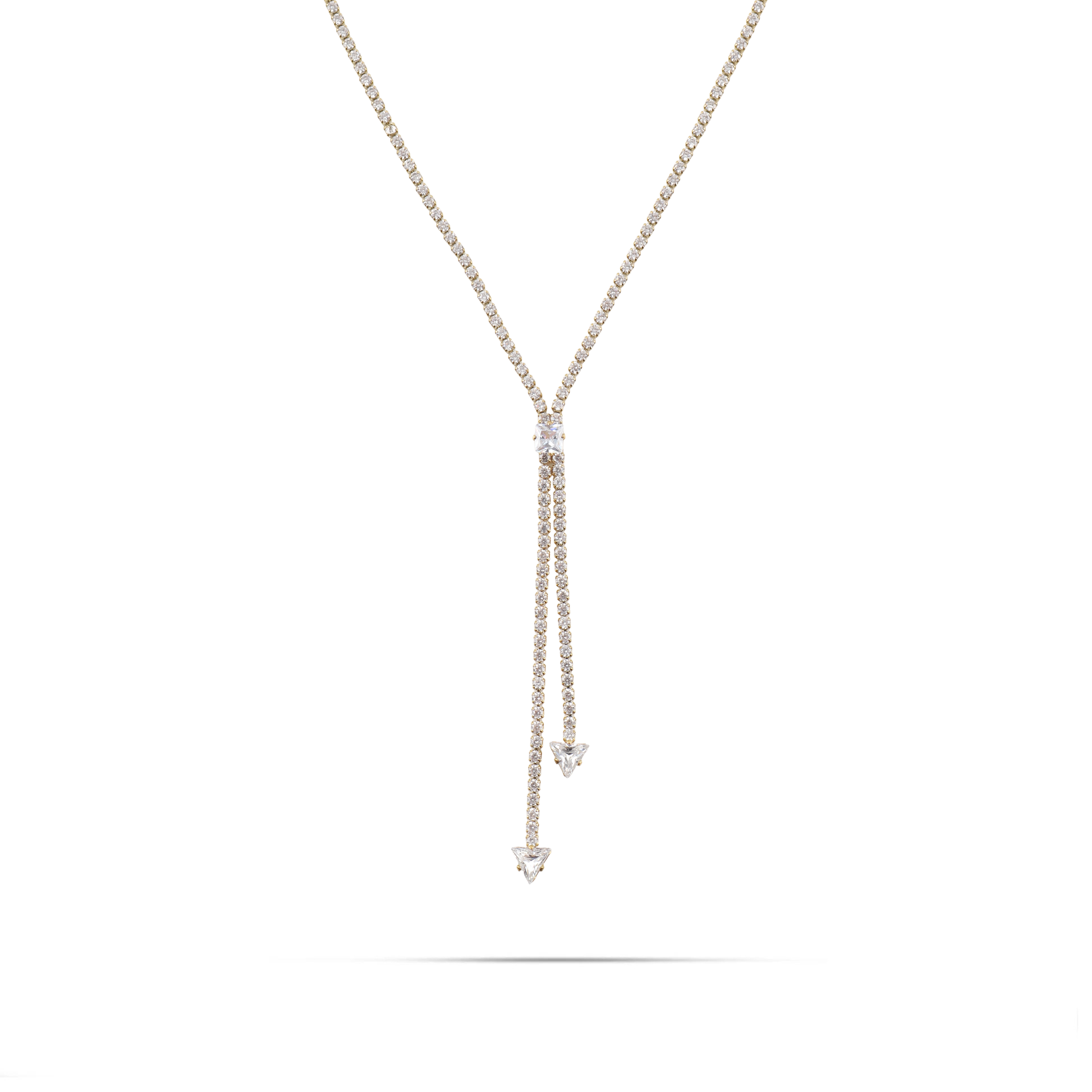 Αλυσίδα λαιμού Tennis από ανοξείδωτο ατσάλι διακοσμημένη με λαμπερές πέτρες Zircon και μικρά σχεδιάκια τριγώνων και κύβων με Zircon, που προσθέτει λάμψη και στυλ σε κάθε εμφάνιση. Η λεπτή σχεδίαση της την καθιστά κατάλληλη για κάθε περίσταση, ενώ οι λαμπερές πέτρες Zircon προσφέρουν λάμψη. Είναι ιδανική προσθήκη στη συλλογή κοσμημάτων σας και θα εντυπωσιάσει σε κάθε εμφάνιση.