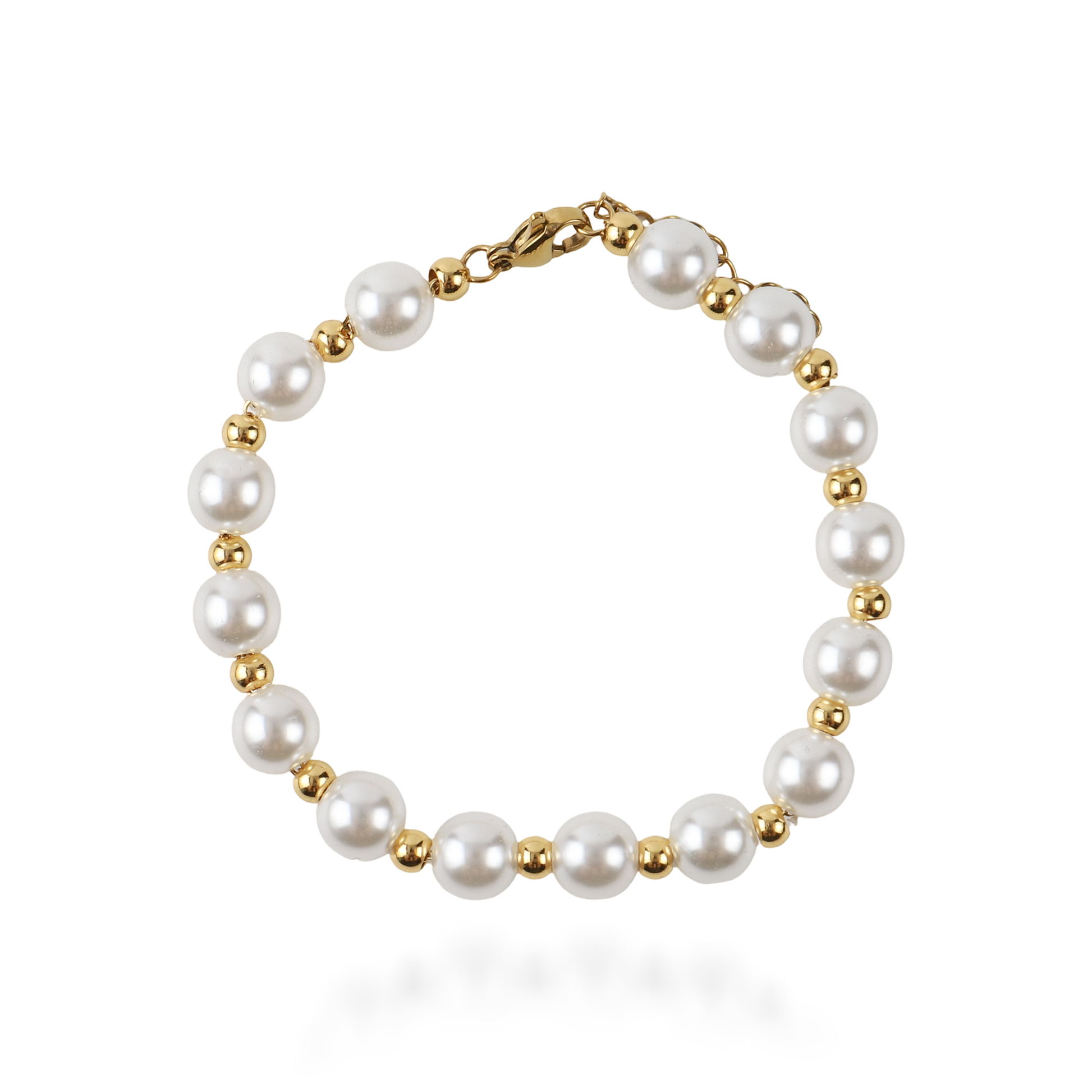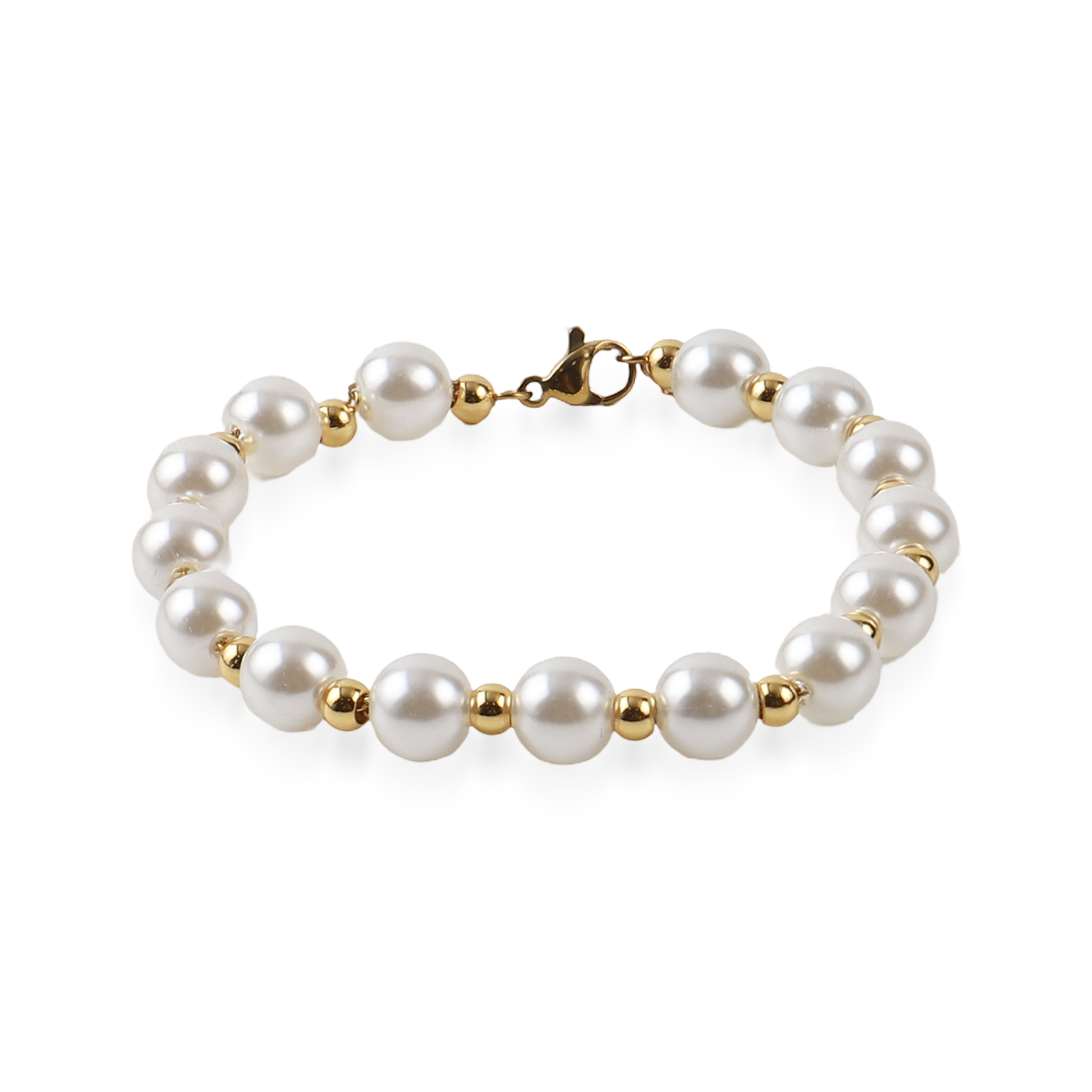 Βραχιόλι από ανοξείδωτο ατσάλι διακοσμημένο με λευκές πέρλες ένα κομψό κόσμημα που προσθέτει λάμψη στο στυλ σας. Οι λευκές πέρλες προσδίδουν μια διαχρονική και κομψή αίσθηση, ενώ το ανοξείδωτο ατσάλι προσφέρει αντοχή και λάμψη. Αυτό το είδος βραχιολιού είναι ιδανικό για καθημερινή χρήση και μπορεί να φορεθεί μόνο του ή να συνδυαστεί με άλλα κοσμήματα για ένα εντυπωσιακό σύνολο.