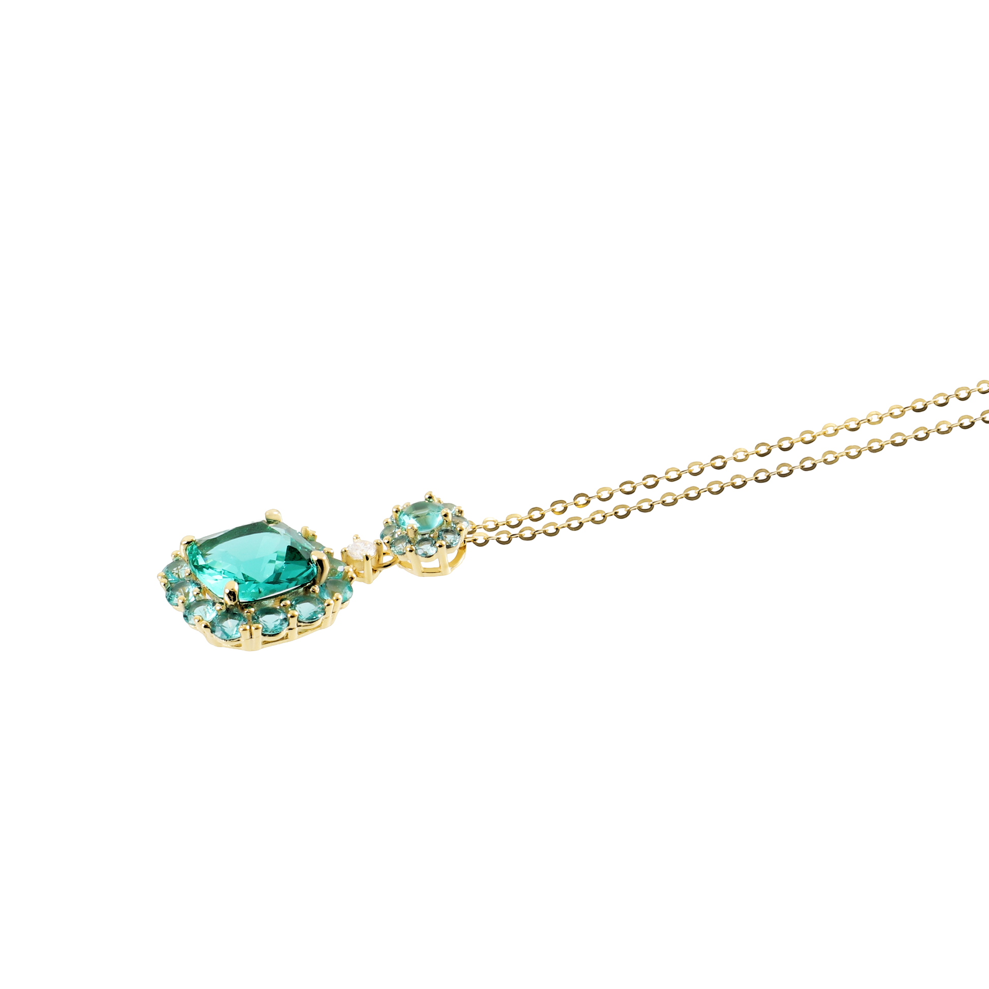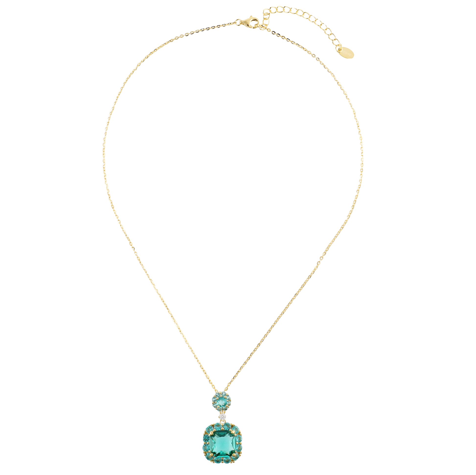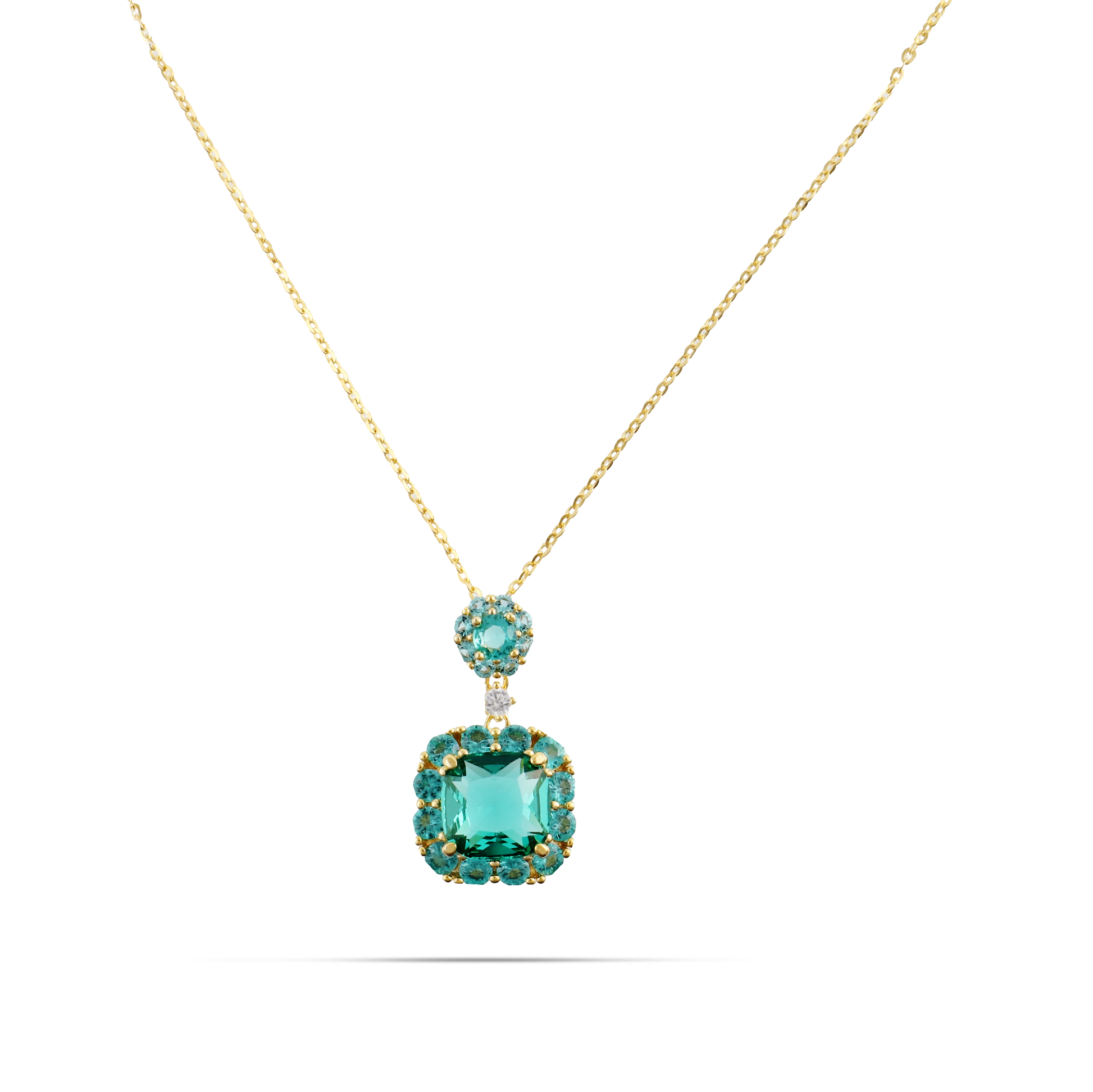 Κολιέ από ασήμι 925 με εκλεπτυσμένο μενταγιόν διακοσμημένο με λαμπερές πέτρες Zircon περιμετρικά και μία πέτρα Zircon στο κέντρο σε πράσινο χρώμα. Η συνδυασμένη λάμψη και αντίθεση των χρωμάτων προσδίδει στο κόσμημα ένα μοναδικό και εντυπωσιακό στυλ. Φορέστε το κολιέ αυτό για να προσθέσετε λάμψη και κομψότητα σε κάθε εμφάνισή σας.
