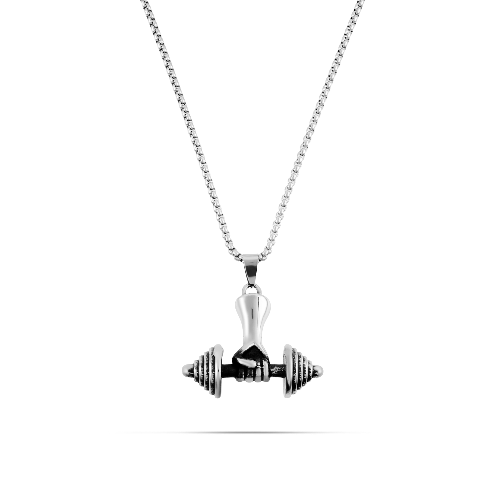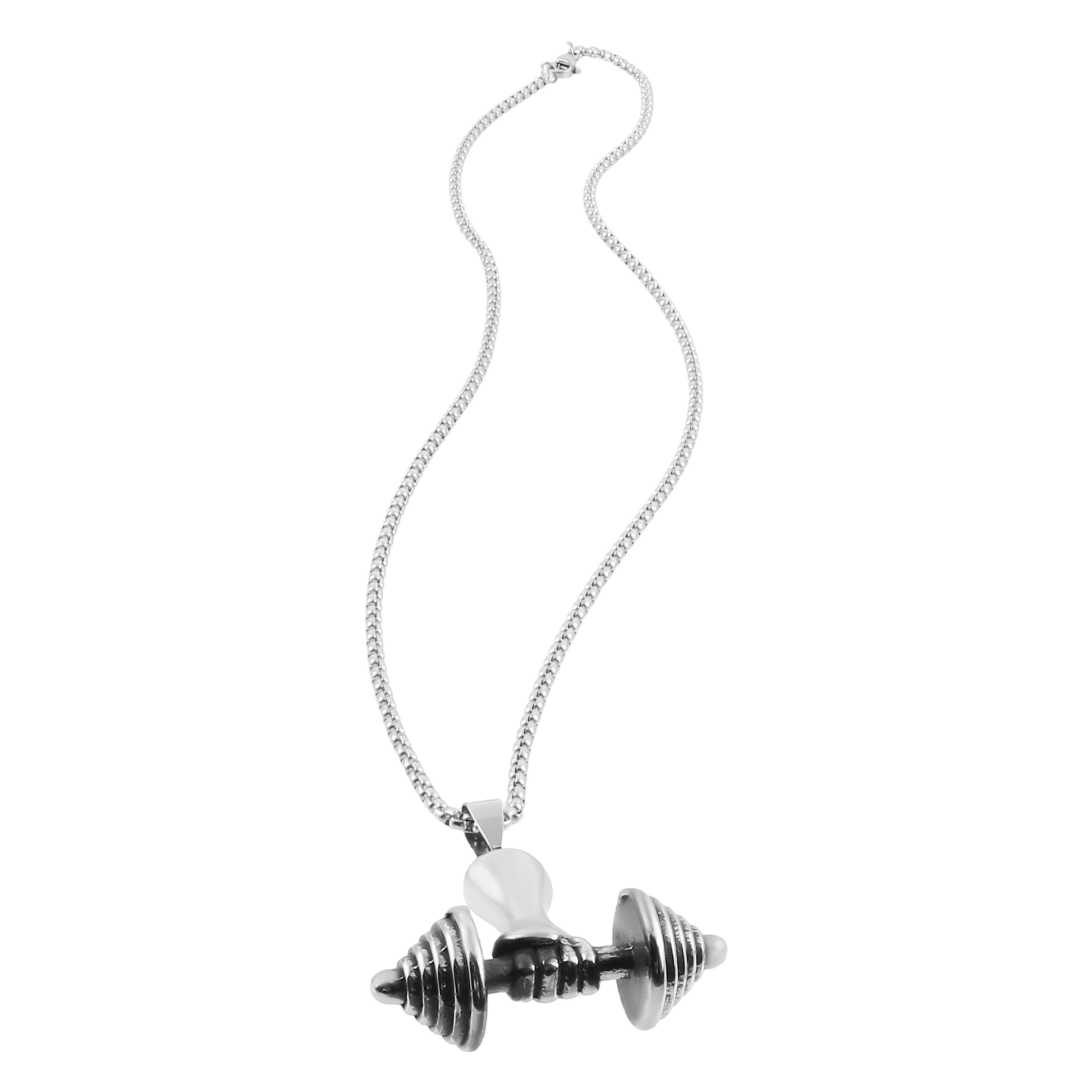 Κολιέ Dumbbell από ανοξείδωτο ατσάλι. Ένα ιδιαίτερο κόσμημα για το λαιμό σας με μενταγιόν χέρι με βαράκι που μπορεί να φορεθεί από το πρωί μέχρι το βράδυ!